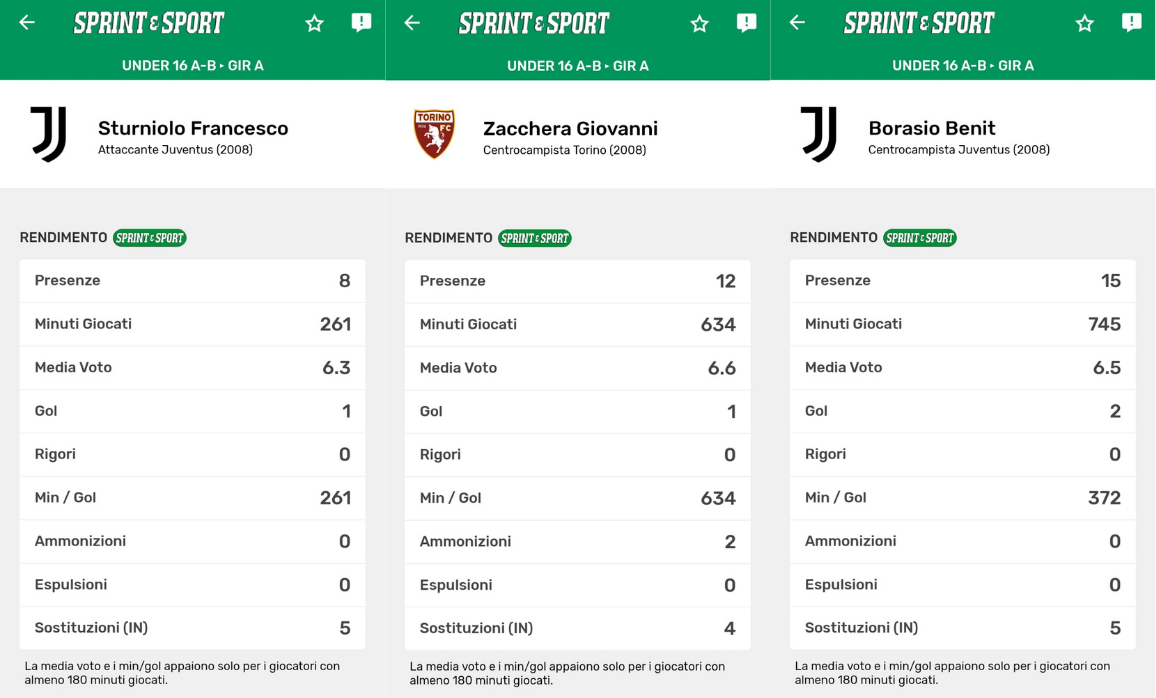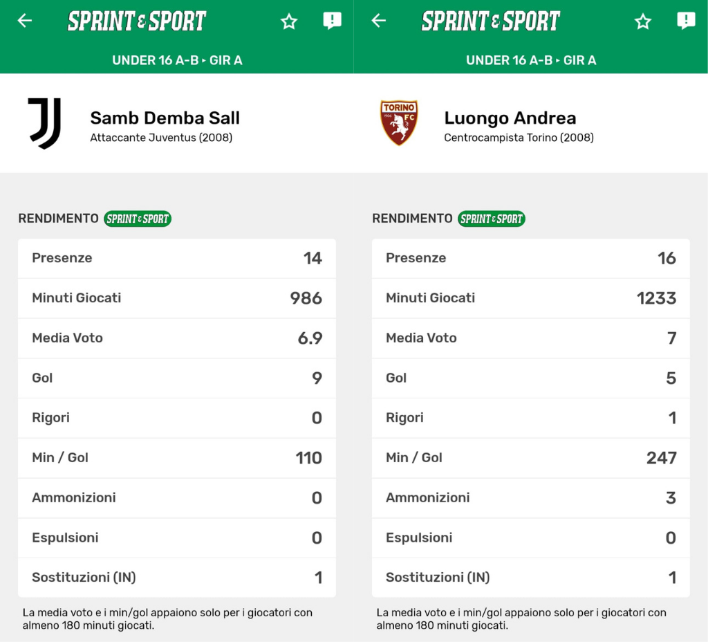 Al giocatore più continuo in campionato, ad uno dei più prolifici: Demba Samb, che grazie ai suoi 9 reti in 14 partite è il secondo capocannoniere del girone, a pari merito con Andrea Muto. Con questo dato, contribuisce attivamente per l'importante statistica collettiva della Juve, infatti, i bianconeri sono la squadra con il miglior attacco del gruppo. Velocità, killer instinct e fame, combinata ad una pulizia tecnica non banale per un attaccante di stazza come lui. Ha segnato gol splendidi, come quello a giro contro la Sampdoria capolista, affossata a Vinovo con un tris secco della Juventus. Oppure, quello tanto strepitoso quanto magico - a proposito di favole - all'esordio con l'Under 17 ai danni della Cremonese: coordinazione perfetta in un fazzoletto e rovesciata alla Ronaldo precisa che s'infila in rete. In quel momento, lo stadio crolla in un'euforia pazzesca, perché capisce definitivamente che ha una perla in casa da cullare e tenere stretta fra le braccia. Trascinatore anche lo scorso anno con l'Under 15 con la quale è arrivato fino alle semifinali dove ha siglato una doppietta contro l'Inter, in questa stagione sta continuando sulla grande onda positiva; premiato anche con le prime chiamate con la selezione di Claudio Rivalta.