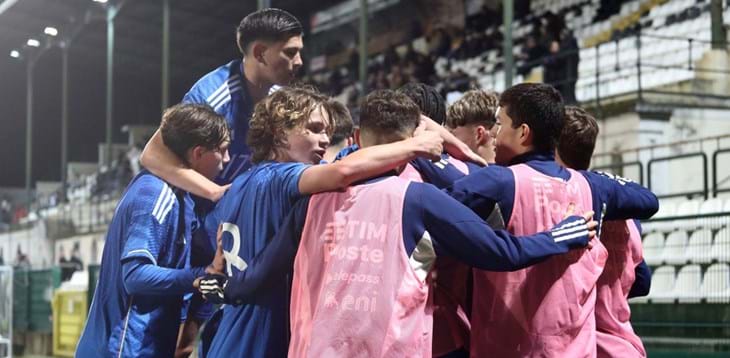 ITALIA UNDER 16 • L'esultanza degli Azzurrini dopo il gol di Comotto (foto figc.it)