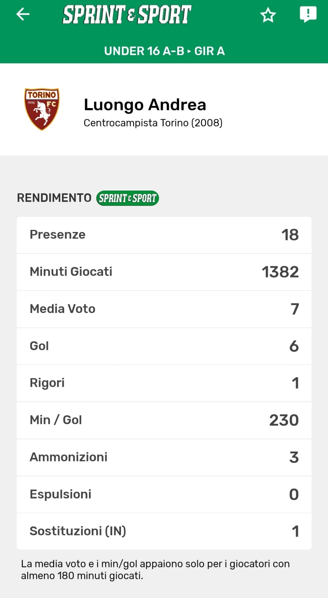 Inoltre, Luongo è il giocatore che vanta la media voto più alta del girone: 7 fisso. Occhio alla prossima giornata, quando il Torino affronterà il Napoli: dovrà cercare di tenere a bada l'enfant prodige, che sentirà aria di casa seppur si giocherà al Cit Tuin e che avrà voglia di bucare la porta dei partenopei per la seconda volta in stagione. Presenza fissa anche nella Nazionale Under 16 di Daniele Zoratto, il quale si affida spesso sull'estro del fantasista granata, che si è fatto notare soprattutto contro Olanda e Repubblica Ceca tra l'ottobre e il novembre scorso, contro le quali ha giocato due partite dal tasso tecnico elevato, tra spunti personali e servizi da calciatore di livello.