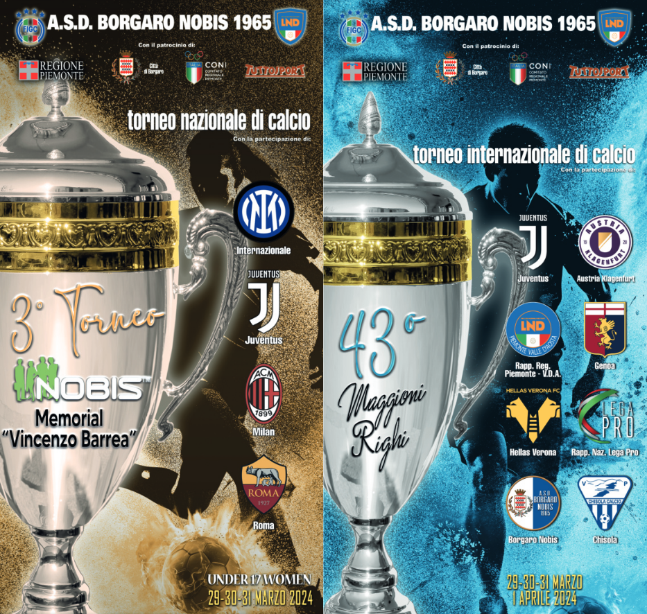 Lunedì 18 marzo, in via Lanzo 163 a Borgaro Torinese, alle ore 20.45 saranno presentati il 43° Internazionale di Calcio Maggioni-Righi (riservato alla categoria Under 17 maschile) e il 3° Torneo Nobis Memorial Vincenzo Barrea (Under 17 Femminile). Un doppio appuntamento storico e tradizionale di Pasqua a cui non si può rinunciare! Al fianco della ormai storica edizione del Maggioni-Righi, uno dei tornei della categoria Under 17 più longevo e prestigioso d’Italia, la terza edizione del Memorial Vincenzo Barrea, ex sindaco di Borgaro, dedicato interamente al calcio femminile e alla categoria Under 17.
