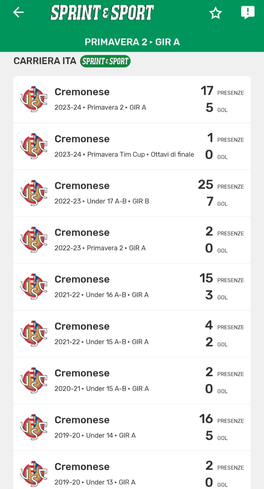 Primavera 2 • Guido Della Rovere, fantasista classe 2007 della Cremonese ad un passo dal passaggio alla Juventus.