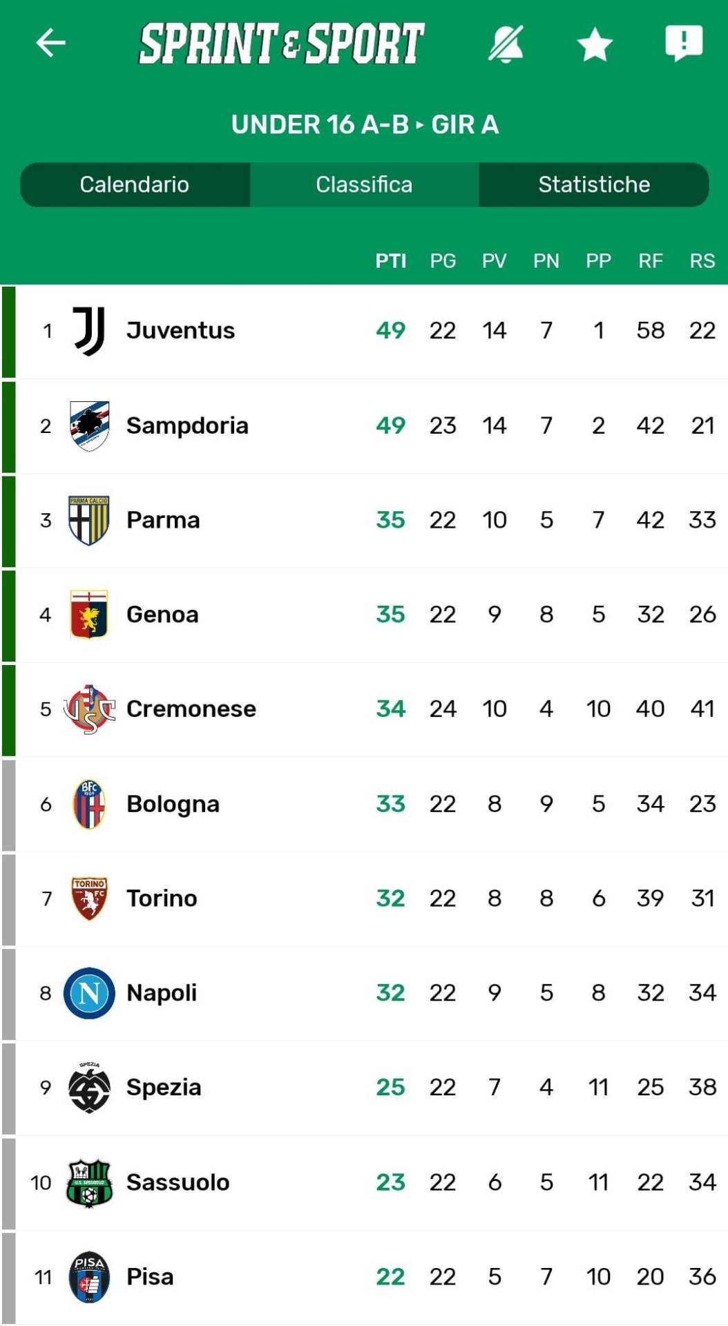 Il Girone A della categoria Under 16 A-B è qualcosa di clamoroso! Sei squadre hanno il destino incerto e si trovano a 3 punti di distanza l'una con l'altra a due giornate dalla fine. In questo gruppone, troviamo anche il Torino al settimo posto con 32 punti, ma come detto, le posizioni alte risultano quasi indifferenti.