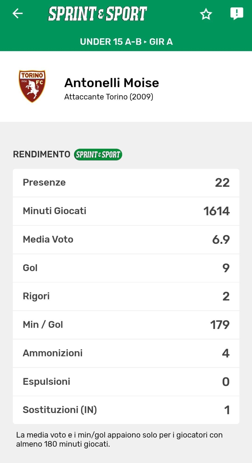 Under 15 A-B • Moise Antonelli, attaccante 2009 del Torino, autore di nove gol pesantissimi, tra cui uno decisivo per la matematica certezza dei playoff