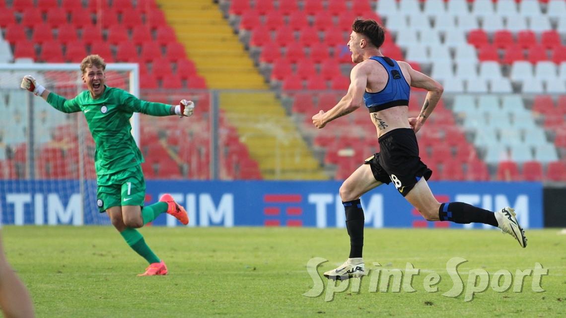 Un modo più assurdo per cominciare l'edizione 2024 delle Finali Nazionali non era minimamente immaginabile. Inter-Genoa è la gara di apertura della kermesse che, nelle Marche, mette in mostra il meglio del calcio giovanile italiano. E, dopo 120 minuti di follia, è anche la gara che diventa automaticamente una delle semifinali più incredibili di sempre. Con l'Inter che all'intervallo è in vantaggio di due reti con il 3-1 maturato grazie ai gol di Venturini, Lavelli, De Pieri e al momentaneo 1-1 di Deseri, e con il Genoa che nella ripresa rimedia prima con Ekhator e poi con Lattari, quando tutto sembra perduto. Il 3-3 al 90' consegna il match ai supplementari, e la sfida decolla ulteriormente. Negli extra-time - con il Grifone costretto a vincere per passare il turno - infatti succede di tutto: il gol di Venturino che vale il sorpasso rossoblù, l'espulsione di Lattari, il gol da 30 metri di Spinaccè che fa esplodere il mondo Inter, l'espulsione dello stesso Spinaccè (a cui poi verranno sommati i cartellini rossi a Carbone dalla panchina e al dirigente Cuccubita), e infine il gol di Arata a mettere fine ai 120 minuti più belli di tutta la stagione. In finale ci va il Genoa. Martedì, al Del Conero di Ancona, ad attendere i ragazzi di Gennaro Ruotolo ci sarà la Roma, che ha battuto l'Atalanta nell'altra semifinale e che ora sogna il terzo Scudetto consecutivo dei classe 2006.