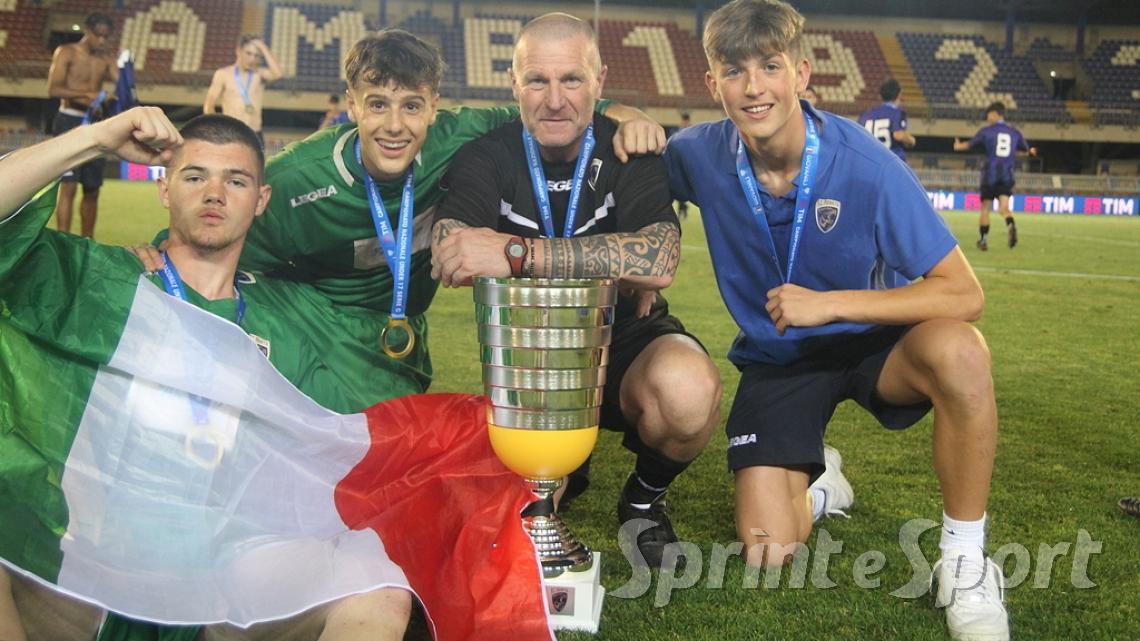 Qualche numero, giusto per capire. Partite giocate in stagione: 34. Vinte 24, pareggiate 5, perse 5. Gol fatti 71, gol subiti 25. Sconfitte in casa, nessuna. 18 risultati utili consecutivi dal 28 gennaio, data dell'ultima sconfitta in campionato (2-1 sul campo del Novara). Squadre eliminate nelle fasi finali: Spal agli ottavi, Albinoleffe ai quarti, Cesena in semifinale, Ancona in finale. Traduzione dei dati? Il Renate è campione d'Italia. Diego Stagi, Luca Valerin, Giovanni Cristiano (ma non solo): il difensore che sblocca la partita di San Benedetto del Tronto, il fantasista che raddoppia, l'allenatore che riporta le Pantere sul gradino nazionale più alto dopo lo Scudetto vinto nel 2018 da Giancarlo Robbiati e la sua Under 16. Sfoglia la gallery per vedere tutte le foto della festa, di seguito tutti i contenuti sulla finalissima Scudetto.
