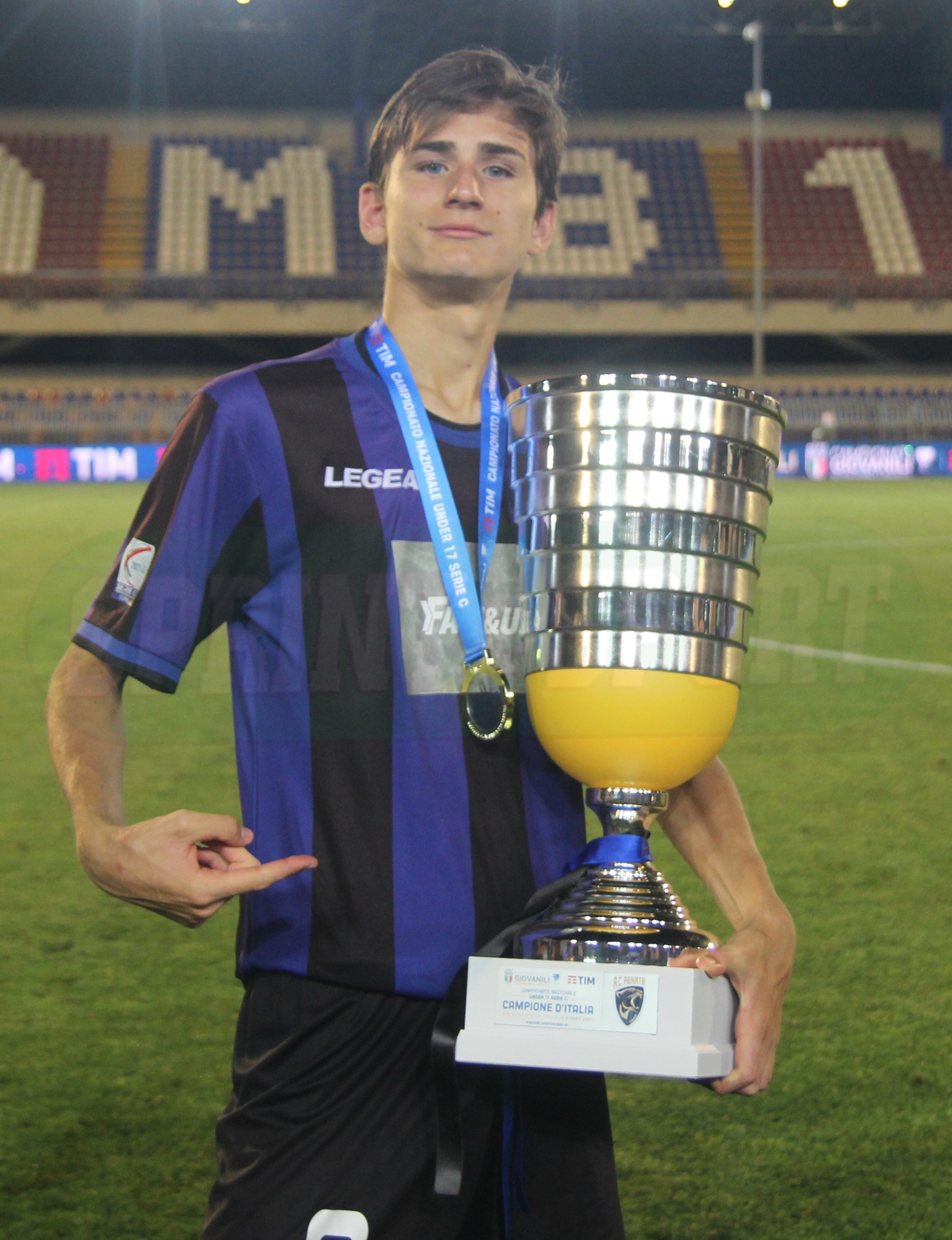 RENATE-ANCONA UNDER 17 SERIE C • L'indice che indica la Coppa, lo sguardo fiero: Diego Stagi è Campione d'Italia