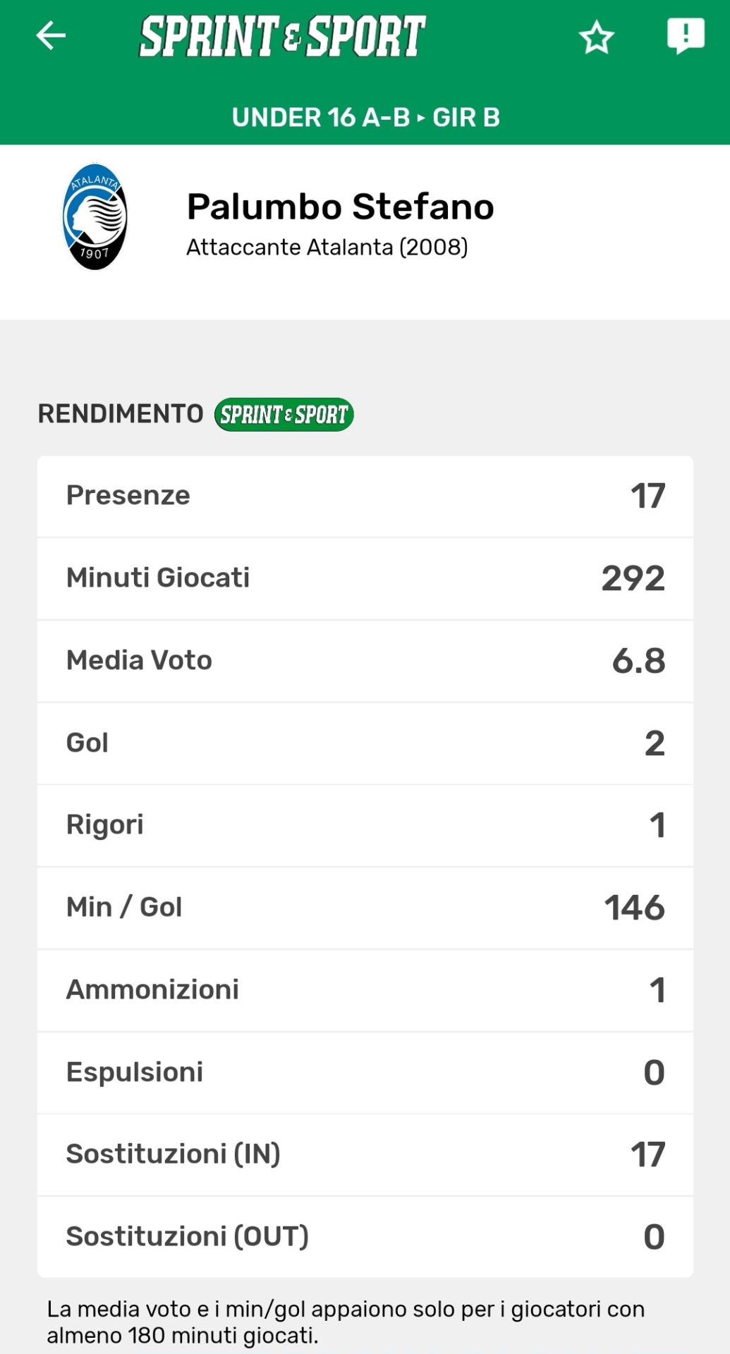Come la favola più bella, in cui il lieto fine ha quel pizzico di magia, incanto e bellezza: al primo anno tra i Prof, Stefano Palumbo vince il campionato Under 16 A-B e si laurea Campione d'Italia con l'Atalanta. Dopo vari provini fatti con le più grandi società del nostro territorio, alla fine, la decisione di Stefano è ricaduta sui bergamaschi, uno dei settori giovanili più fiorenti del calcio italiano. E con il senno di poi, ha avuto ragione. Se a settembre scorso qualcuno gli avesse detto "vincerai subito il campionato", forse, si sarebbe concesso una risata di incredulità. La vita è fatta di sorprese, in questa, però, c'è tanto lavoro, sacrificio, ma soprattutto un'enormità di talento.