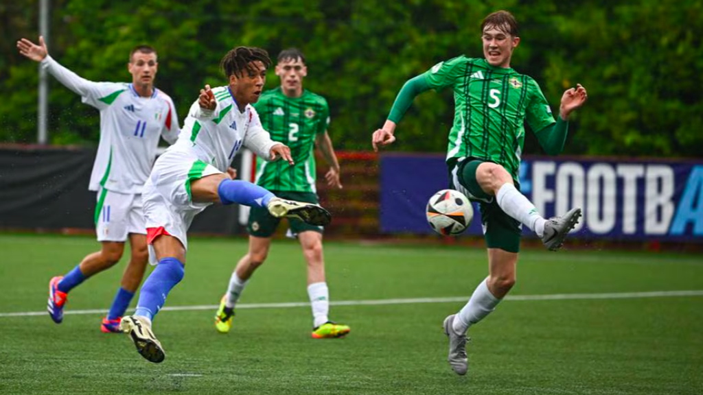 Un copione solo, come doveva essere. L'Italia che tiene palla e costringe l'Irlanda del Nord a difendersi, i padroni di casa che si chiudono con un 3-4-2-1 che sa tanto di 5-4-1 sperando magari di poter far male agli Azzurri con qualche ripartenza. Corradi rispetto alla Norvegia preferisce Mannini e Camarda a Magni ed Ebone e si affida ovviamente ai piedi e al cervello di capitan Lipani, ago della bilancia di un 4-3-1-2 che vive moltissimo sui movimenti di Di Maggio e Ciammaglichella e sulla fantasia di Pafundi. Il destro da fuori dello stesso Lipani che finisce alto (4') è il primo avvertimento in una partita che al secondo tentativo dell'Italia si sblocca: Pafundi alza un pallonetto per Ciammaglichella che spizza di testa, Zeroli spacca la porta schiacciando il destro alle spalle di Charles (15'). Che funzioni tutto a meraviglia è chiaro - azione avvolgente rifinita da Zeroli per l’inserimento di Ciammaglichella, Thompson salva tutto opponendosi con il volto (20') - ma che l'Irlanda del Nord non voglia sfigurare di fronte ai propri tifosi lo è altrettanto, e una palla gol prima dell'intervallo i padroni di casa riescono anche a crearla: punizione buttata in area da McClure, mischia e rasoterra da pochi passi di Goodman che si infrange sul miracolo di piede di Marin (27'). Il classico episodio che risveglia gli Azzurri, la cui idee stavano andando un po' ad appiattirsi: ruleta di Zeroli e palla in profondità per Bartesaghi, cross a rimorchio per Di Maggio che prova la deviazione bassa col mancino, Charles blocca scendendo basso sulla sua sinistra (31'). L'intervento in ritardo di Goodman su Camarda - dopo una super giocata di Ciammaglichella - sarebbe da rigore ma il direttore di gara lascia correre (43' st), ma il raddoppio arriva comunque prima dell'intervallo: passaggio sciagurato all'indietro dello stesso Goodman sul qualche si avventa Camarda, destro vincente da posizione defilatissima e partita chiusa dopo i primi 45 minuti.