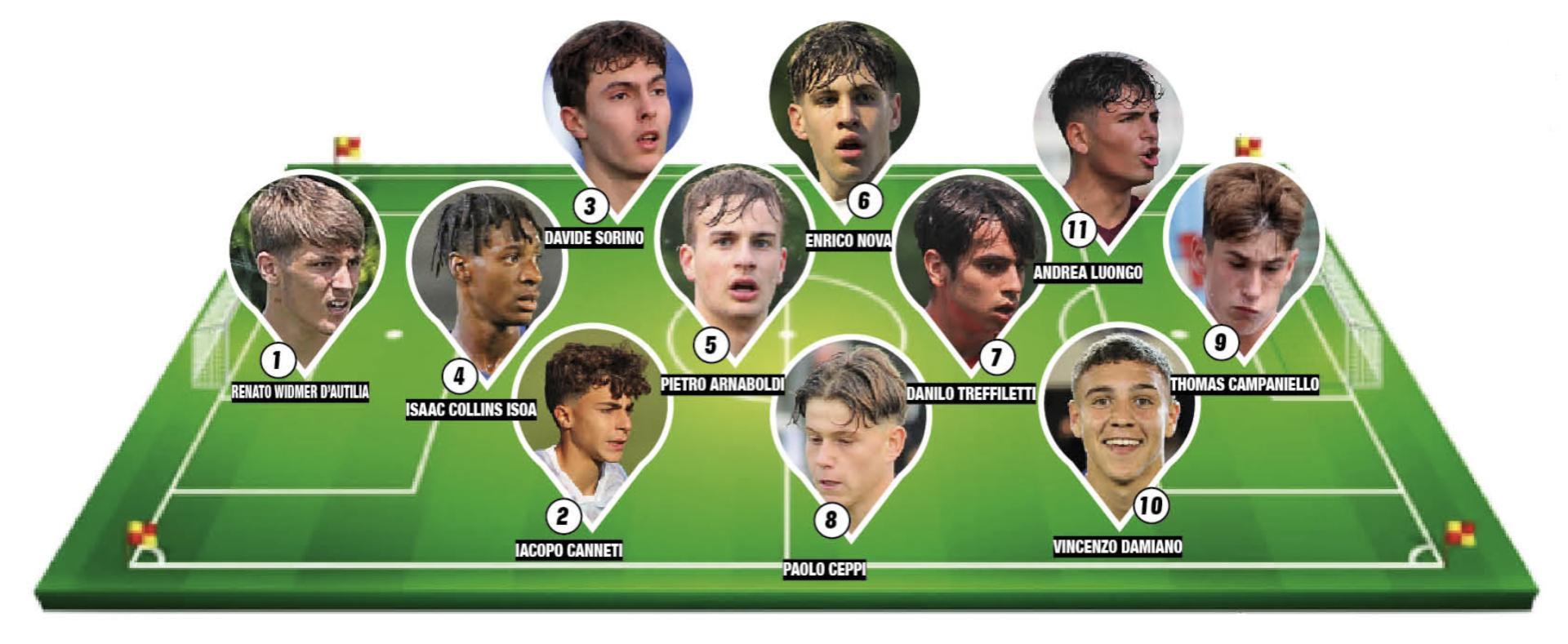 Damiano, sorrisi e magie. Ceppi, giocate d'autore. Canneti e Sorino sulle fasce, il fantasista è Treffiletti, per i gol c'è Campaniello. L'asso nella manica: Simone Lontani. Di seguito, la nostra Top 11 dell'Under 16 Serie A-B della stagione 2024-2025.