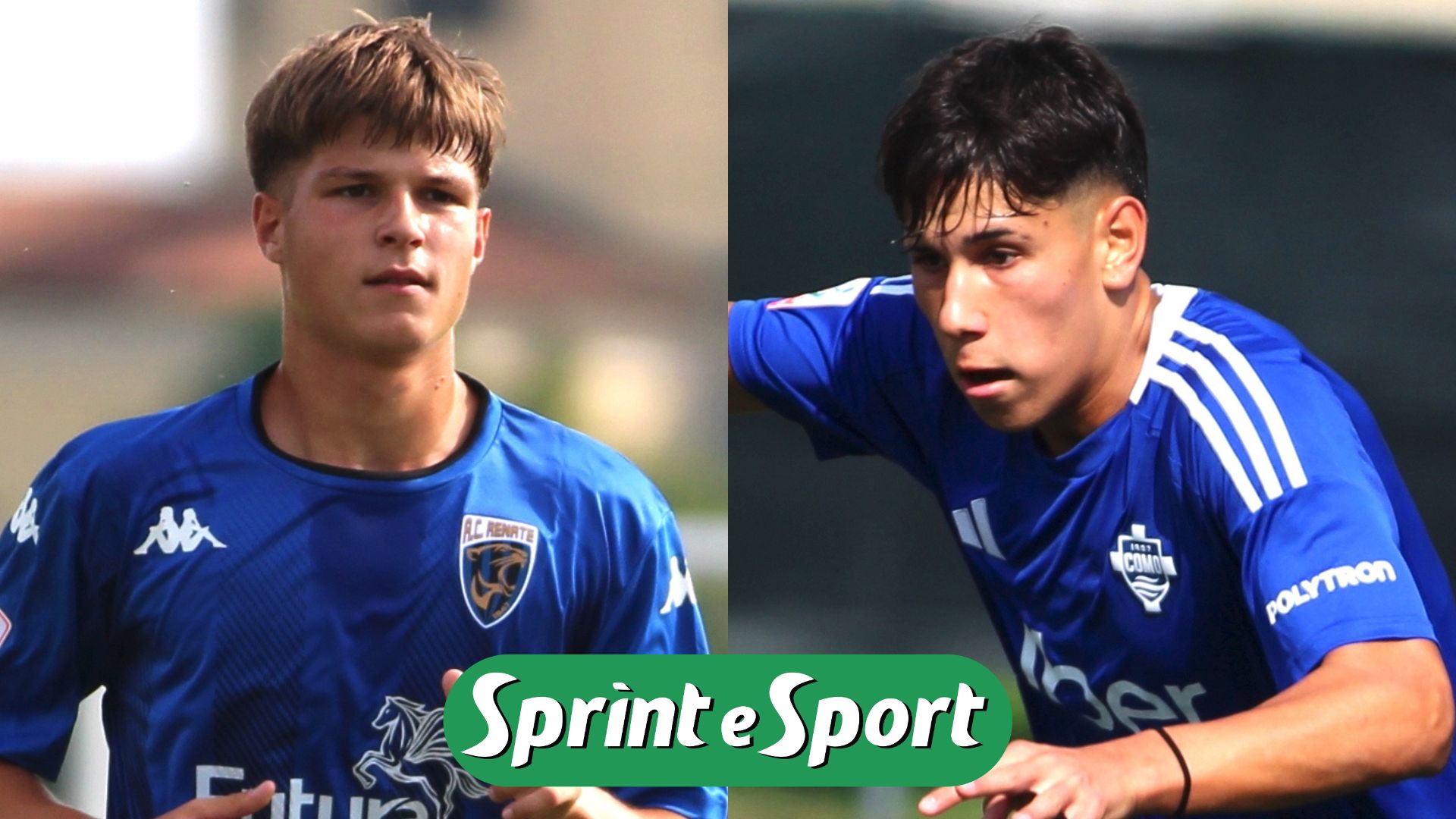 RENATE-COMO PRIMAVERA 2 • Michele Meloni a sinistra, Francesco Andrealli a destra: il primo si distingue sulla fascia sinistra dei padroni di casa, il secondo detta le operazioni degli ospiti