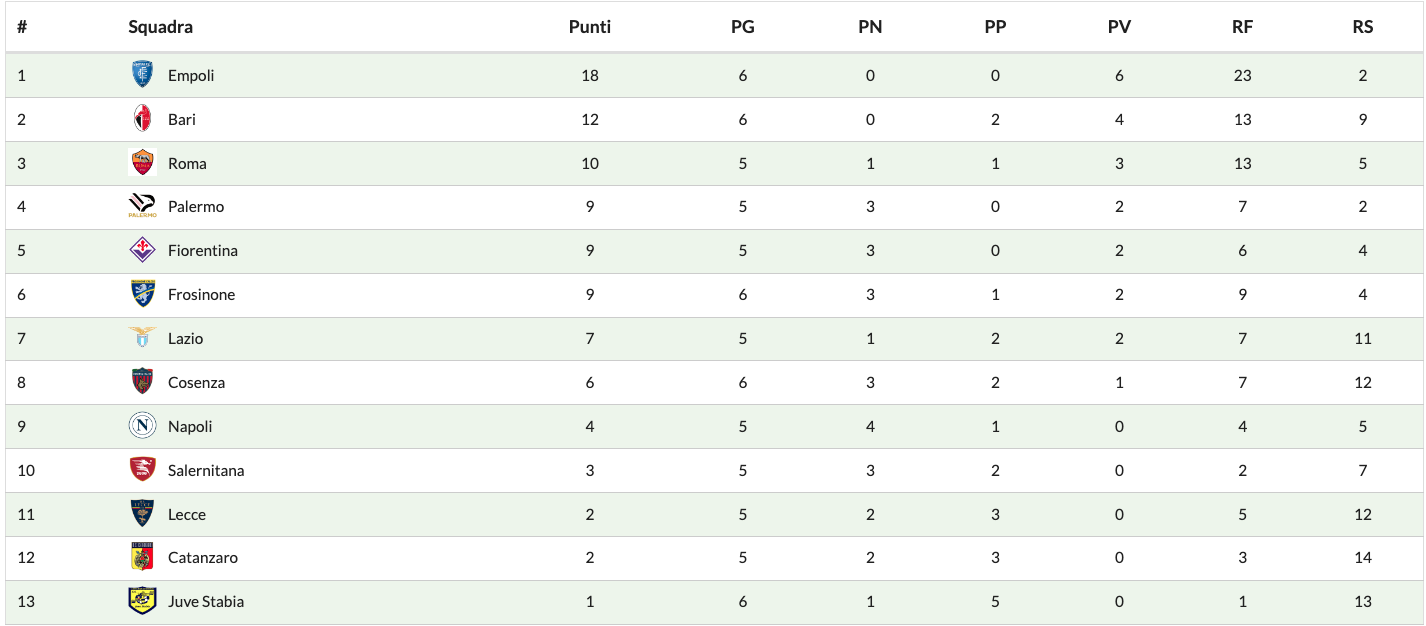 Un altro termine per descrivere questo Empoli è anche 'perfezione'. La perfezione degli attaccanti azzurri, che si unisce nel migliore dei modi come un puzzle con la fase difensiva altrettanto ineccepibile. Come spesso succede, anche questa volta, l'oggettività delle statistiche ci viene in aiuto: quattro clean sheet in sei partite (tre per il portiere titolare Mattia Magliano e una per Matteo Bernice), le reti incassate sono appena due di cui una, contro la Lazio nel poco fa citato 1-7 quasi insignificante; l'altra è stata quella di Lorenzo Giurdanella del Frosinone valida per il momentaneo pareggio dei Ciociari nella terza giornata Forse, non dovremmo nemmeno specificarlo, ma - ovviamente - l'Empoli è la squadra che vanta la miglior difesa del campionato.