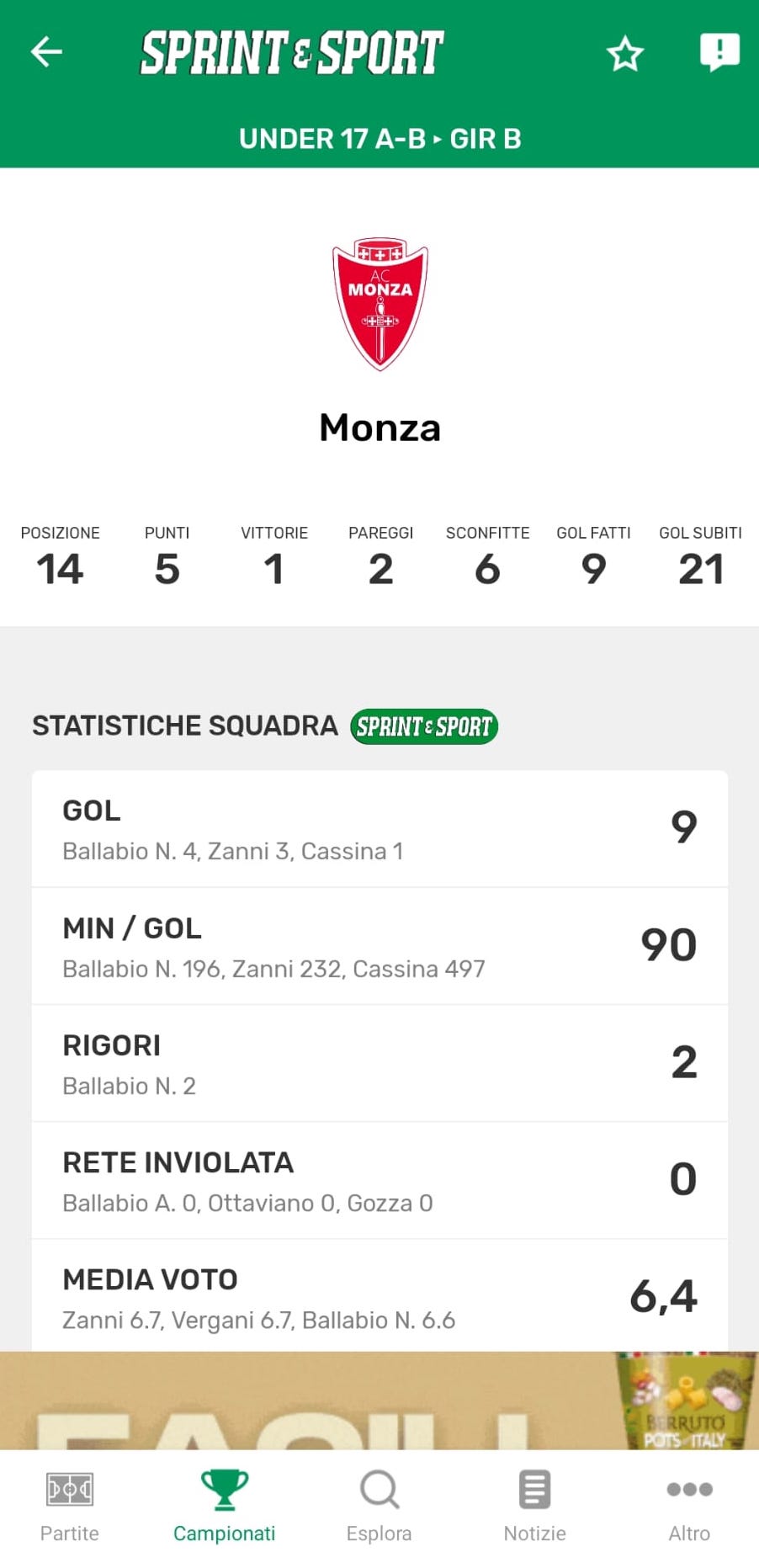 Tutti i numeri dell'Under 17 del Monza: scarica la nostra applicazione per tutte le statistiche personali e di squadra