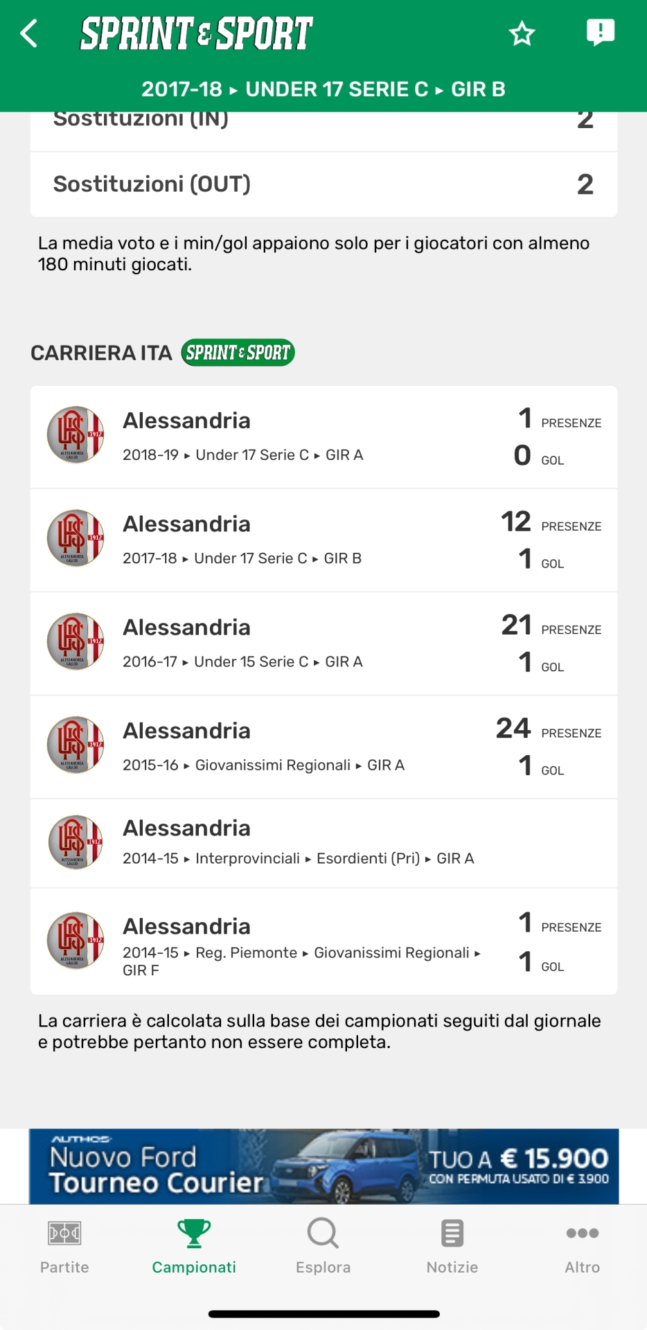 Ruolo difensore, Pietro Bagnadentro ha anche però timbrato il cartellino almeno una volta in ogni stagione, facendosi notare anche davanti.