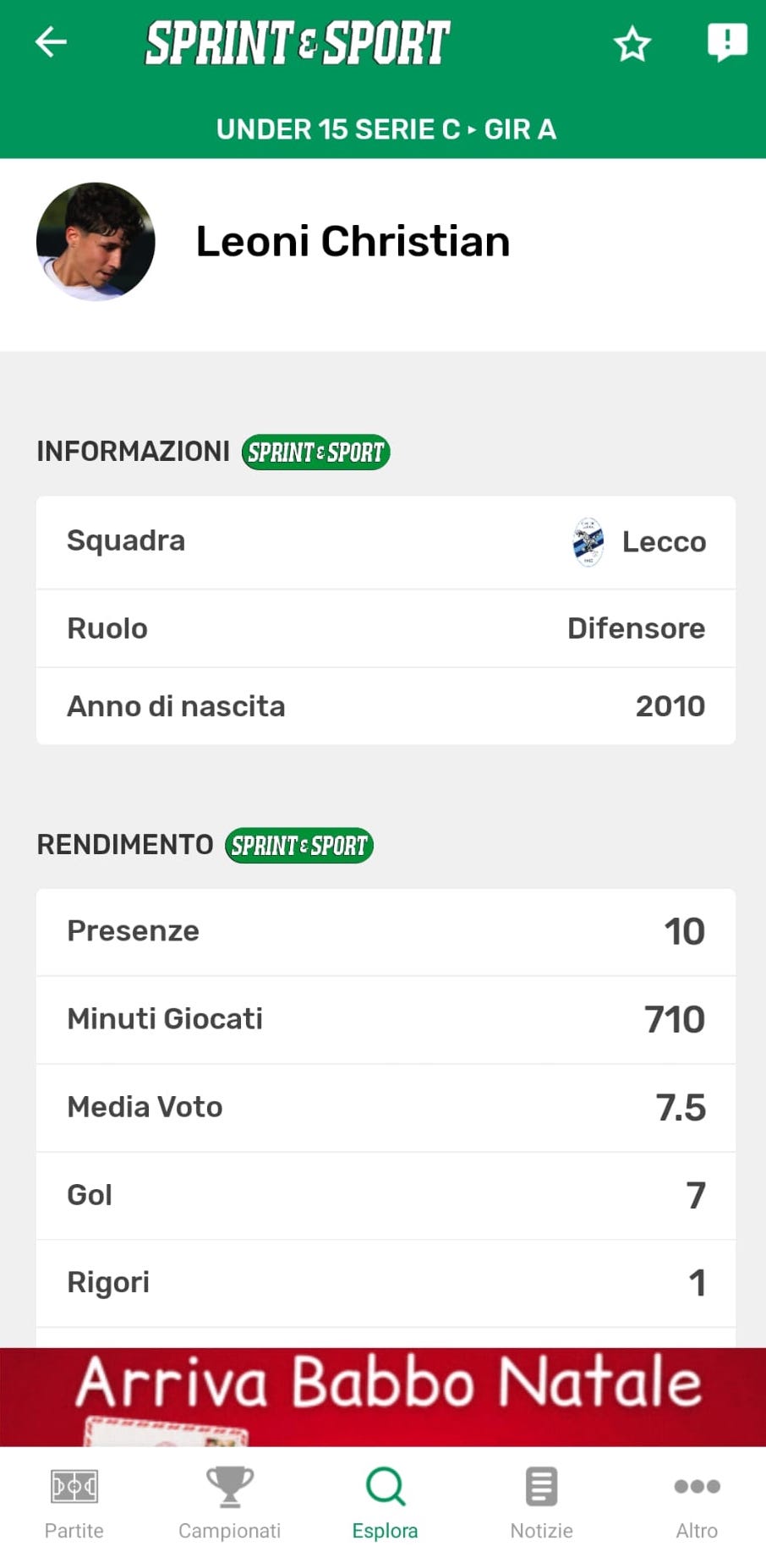 Il terzino è uno dei ruoli più sottovalutati, forse anche il motivo per cui trovarne forti ultimamente è abbastanza complicato. Talenti come Leoni vanno dunque tutelati e soprattutto lasciati liberi di esprimersi. In questo Vicinanza Toscano è tra i migliori, motivo per cui non ha avuto dubbi a metterlo nel ruolo che il classe 2010 preferiva. Per dimostrare al tecnico che la scelta era corretta, Christian ha deciso di esordire con la nuova maglia niente meno che con una doppietta. In casa contro il Pontedera realizza un calcio di rigore dopo undici minuti e non contento nella ripresa segna il gol del momentaneo 5-1, prima che la gara si concludesse sul 6-2. Ci può stare, magari una giornata fortunata. Invece assolutamente no, perché una settimana dopo nella trasferta di Lumezzane segna ancora alla mezz'ora del primo tempo, contribuendo ad un'altra vittoria del Lecco. Due giornate dopo segna anche nello 0-3 rifilato all'Alcione, sbloccando la gara. Nell'incredibile vittoria per 10-1 contro il Sassari Torres c'è ovviamente anche la sua firma, che è arrivata anche nell'unica sconfitta stagionale. Nel big match contro il Renate, le Aquile hanno perso per 2-1, ma Leoni ha acceso le speranze dei suoi accorciando le distanze a qualche minuto dal termine. I ragazzi di Vicinanza Toscano hanno reagito bene perché nella trasferta contro la Pro Patria sono tornati i tre punti. Al 10' della ripresa sull'1-1 Valente scende sulla fascia e serve un pallone sul quale si avventa Leoni che sterza, supera l'avversario e calcia col mancino, il piede debole, riportando le Aquile in vantaggio. Qualche minuto dopo sfiora la doppietta su un cross perfetto di Fellini. Risultato finale 2-3, ennesima vittoria ed ennesima rete per il terzino goleador.