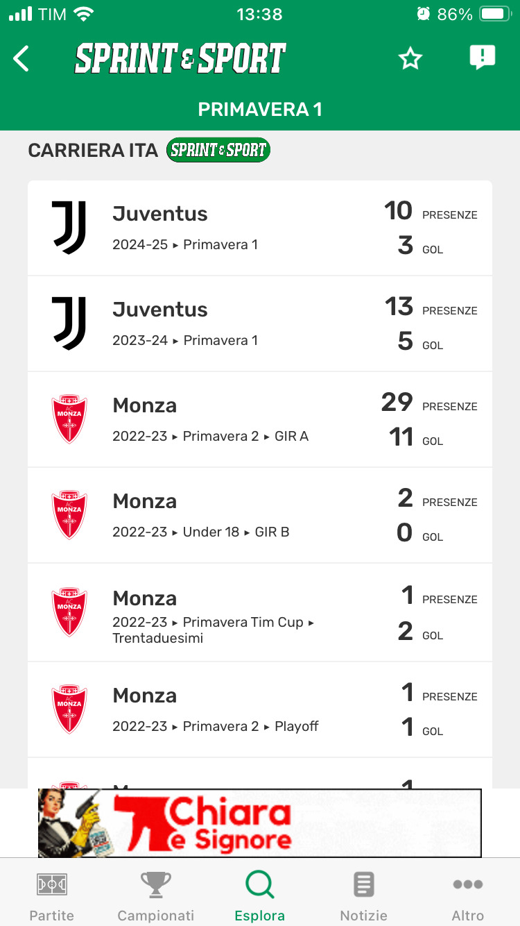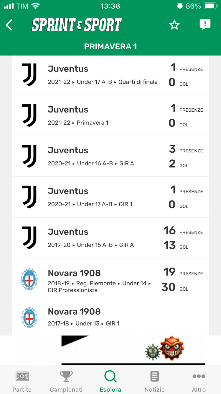LA CARRIERA DI VACCA DALL'APP DI SPRINT E SPORT: NOVARA, JUVE, MONZA E ANCORA JUVE