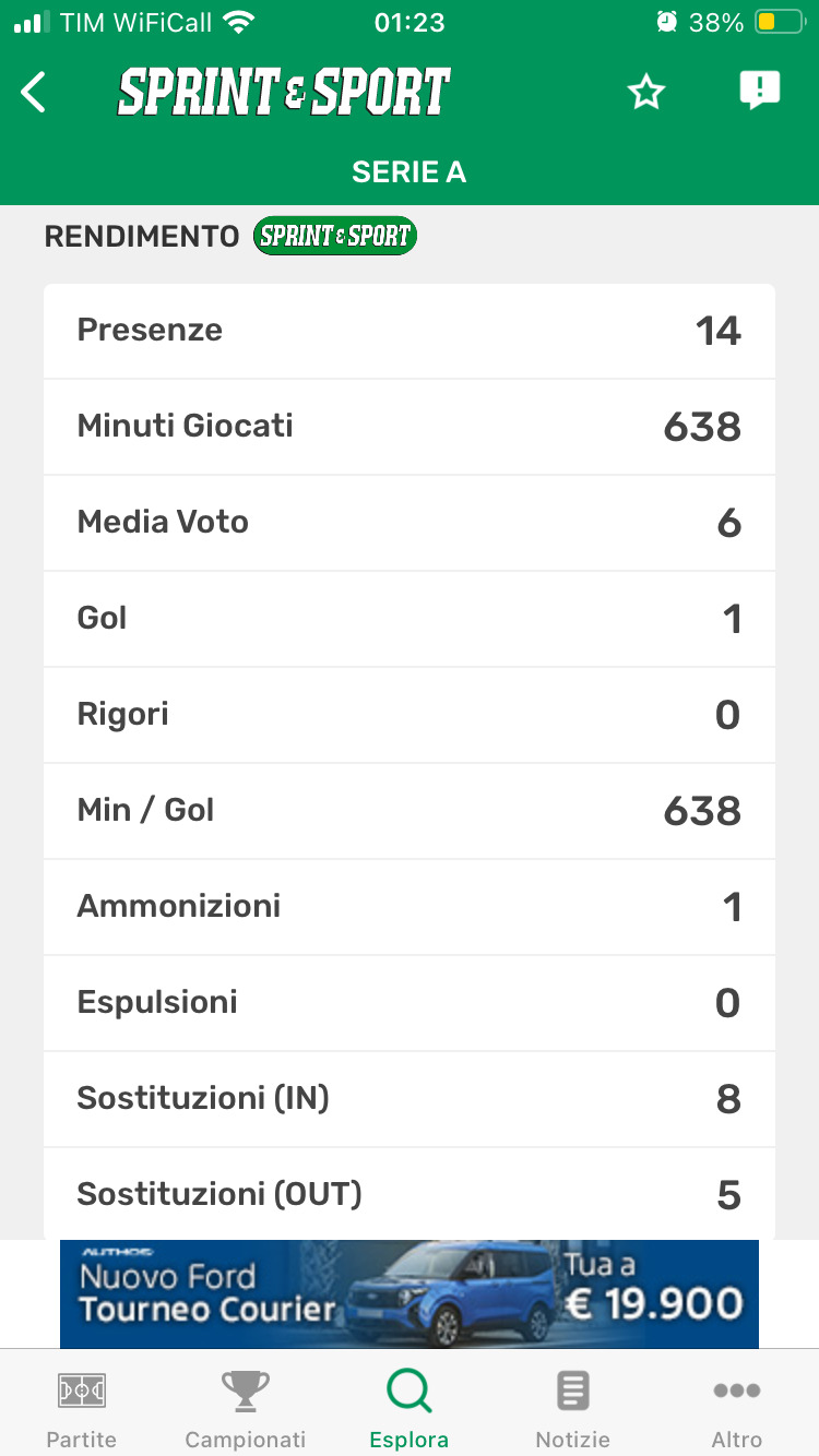 I NUMERI DI RICCARDO SOTTIL NELLA STAGIONE 2024/2025