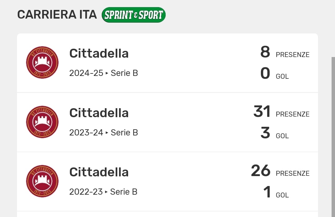 Il rendimento di Andrea Magrassi negli anni del Cittadella: sulla nostra App tutte le statistiche individuali e di squadra