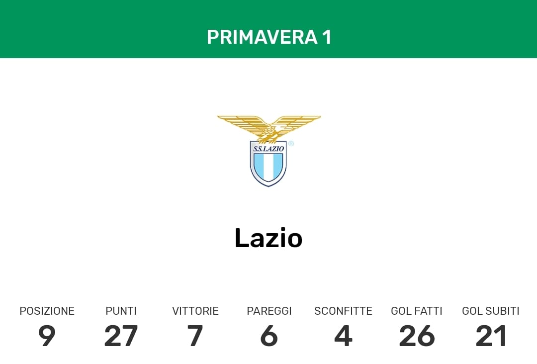 Il rendimento della Lazio in questa prima parte di stagione: sulla nostra App tutte le statistiche individuali e di squadra del Campionato Primavera 1