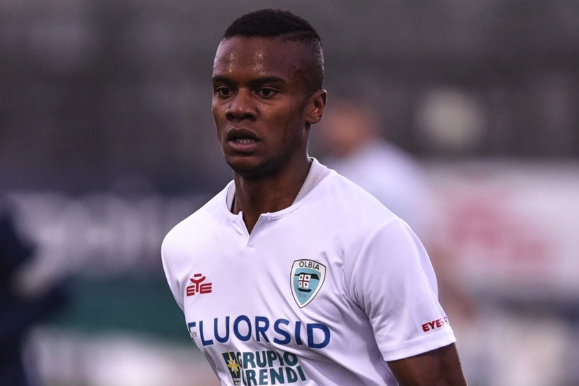 King Udoh con la maglia dell'Olbia dal 2020 al 2022 con 69 presenze totali e 16 gol