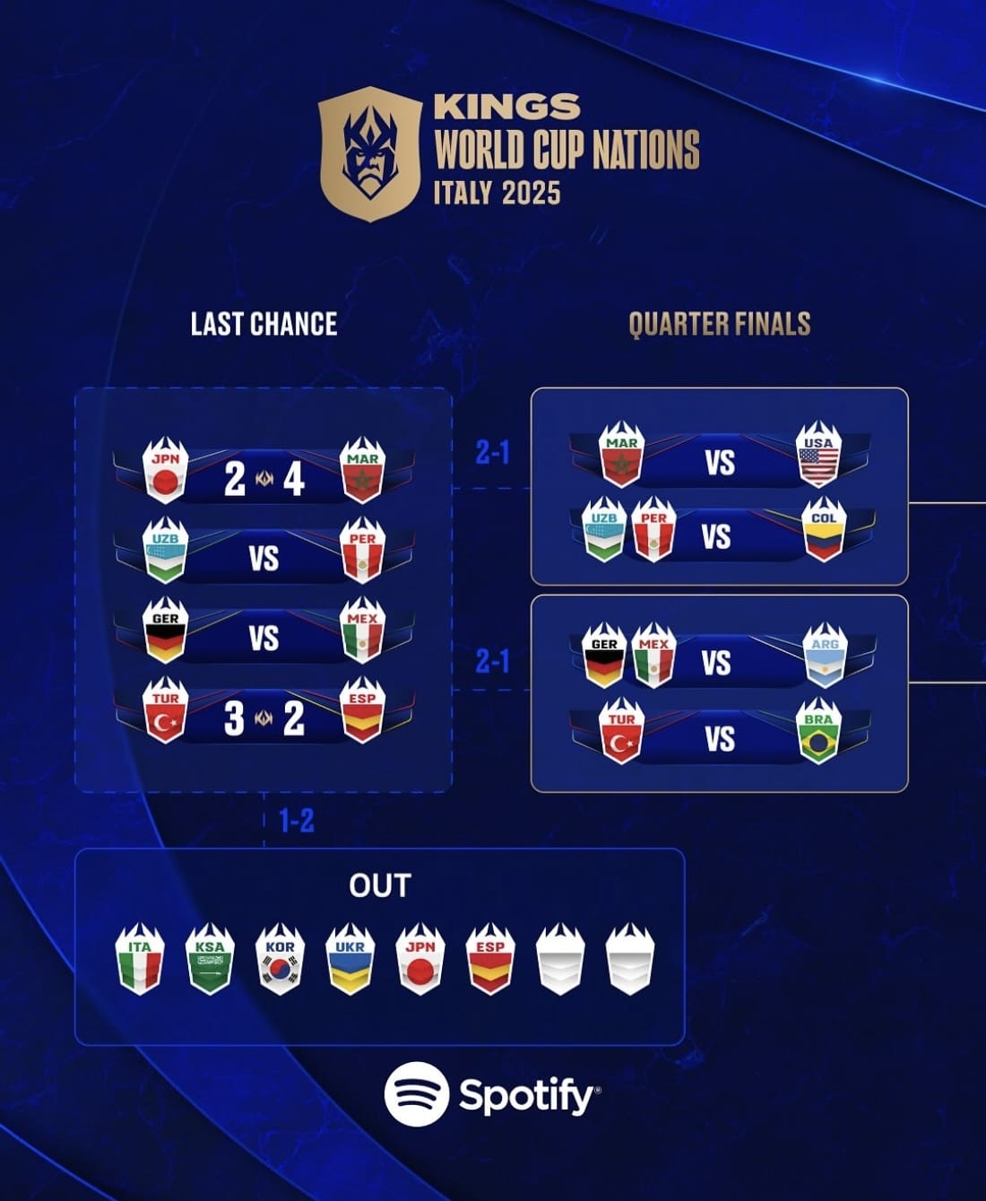 Inventare una competizione, giocarla tutto l'anno per due anni, arrivare al Mondiale e non qualificarsi neanche ai quarti di finale, venendo eliminati da strafavoriti: è un disastro storico quello della Spagna, che al terzo turno saluta la Kings World Cup Nations non riuscendo neanche a passare in vantaggio contro la Turchia, trascinata da un portiere autore di un gol bellissimo e almeno due miracoli. Un risultato inaspettato, che arriva, invece, dopo la seconda prestazione sensazionale dell'uomo più atteso, ovvero il Pallone d'Oro Nadir Louah, ancora una volta trascinatore del suo Marocco verso un quarto di finale i cui sorteggi sono già stati effettuati.