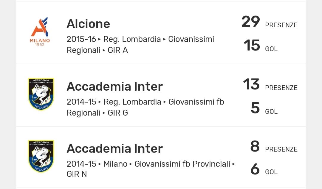 I numeri di Nicolò Rovella quando giocava a Milano con Alcione e Accademia Inter: sulla nostra App tutte le statistiche dei campionati giovanili
