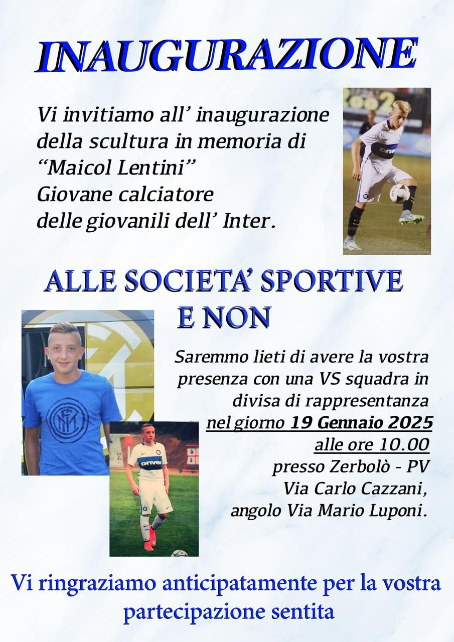 Chi era Maicol Lentini? Un giovane calciatore, una promessa del calcio italiano, un ragazzo che ha saputo far sognare chiunque abbia avuto la fortuna di vederlo giocare. Maicol Lentini, nato e cresciuto a Zerbolò, ha lasciato un segno indelebile nel cuore di chi lo ha conosciuto. La sua storia, sebbene tragicamente breve, è un racconto di talento, passione e coraggio che merita di essere ricordato. Domenica 19 gennaio, Zerbolò - un comune di meno di 2mila abitanti in provincia di Pavia - si prepara a rendere omaggio a Maicol Lentini con l'inaugurazione di una scultura in sua memoria. L'evento si terrà in via Carlo Cazzani, angolo via Mario Luponi, nel paese che lo ha visto crescere. Sarà un momento di raccoglimento e celebrazione, un'occasione per ricordare il giovane talento che ha toccato il cuore di tanti. La scultura - per iniziativa della famiglia, di cui si fa portavoce il padre, Enzo Lentini, Presidente dell’Associazione, (a scopo benefico), “In campo per te Maicol Lentini“ - sarà un simbolo tangibile dell'eredità di Maicol, un ricordo di un sogno che, sebbene interrotto, continuerà a vivere nei cuori di chi lo ha conosciuto.