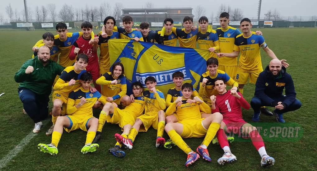 PERGOLETTESE-RENATE UNDER 16 SERIE C • La festa di gruppo al termine della partita: tutta la gioia dei gialloblù