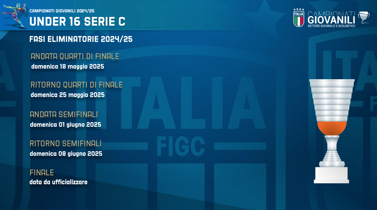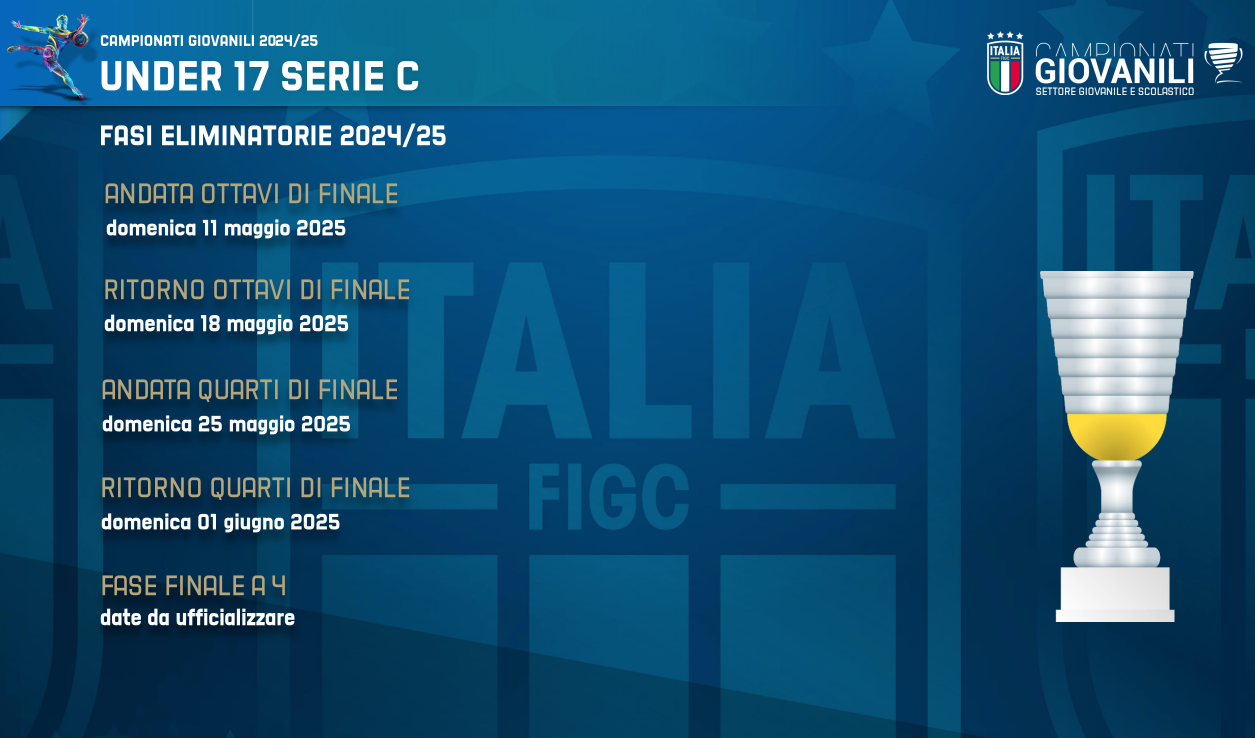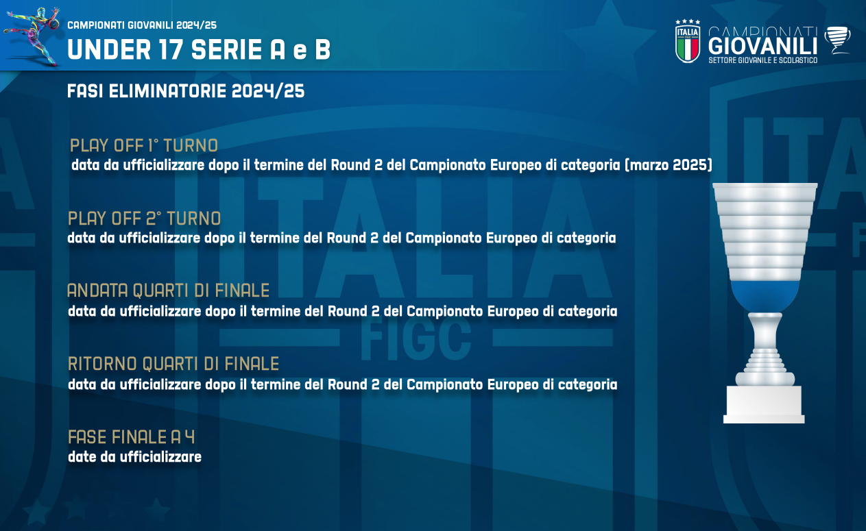 Con l'inizio da poche giornate dei vari gironi di ritorno, la Figc ha ufficializzato le date dei play-off dei vari campionati nazionali professionistici. L'unica categoria che dovrà aspettare l'ufficialità è l'Under 17, dopo il Round 2 del Campionato Europeo di categoria che si terrà nel mese di marzo.