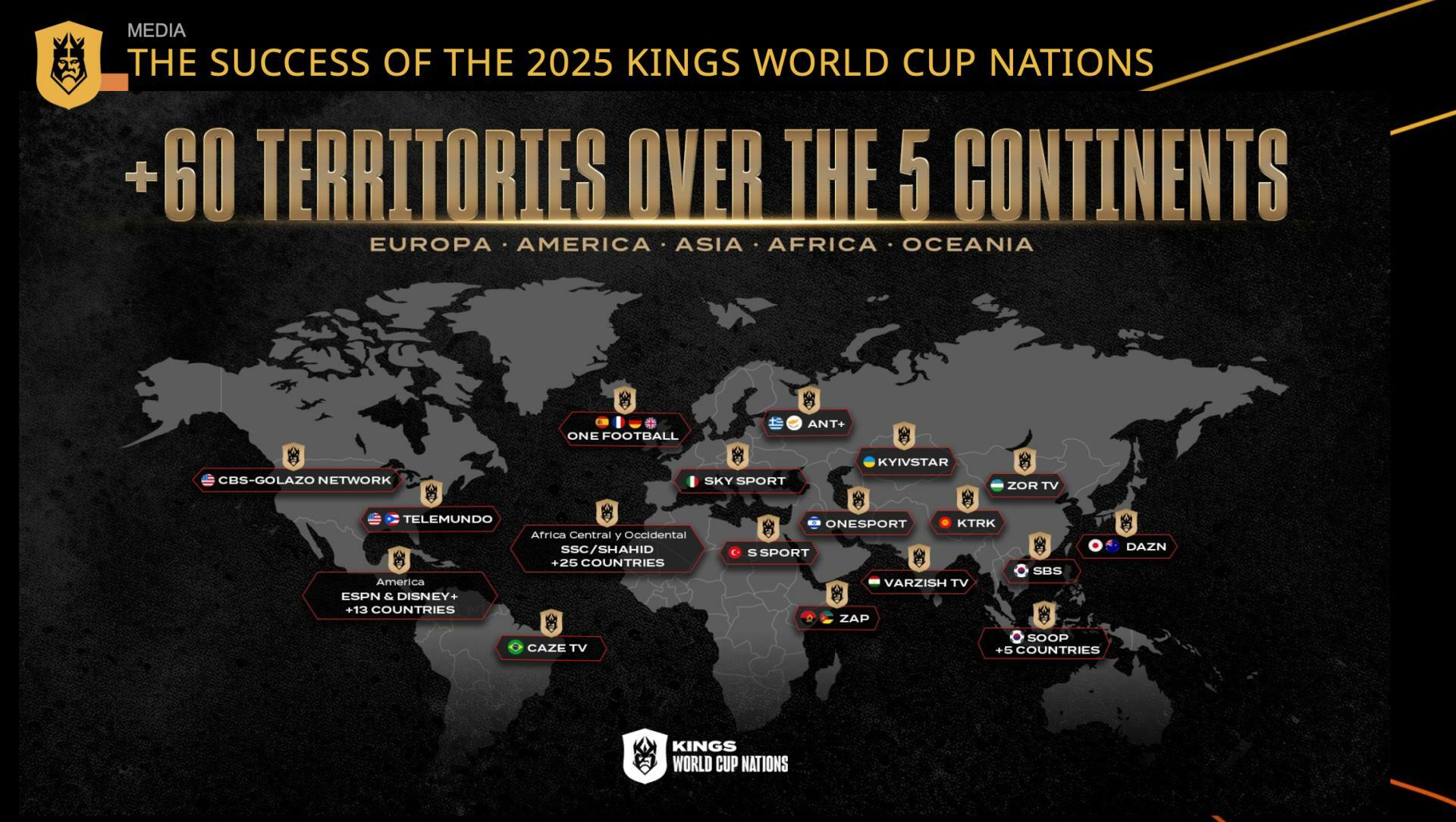 A proposito di distribuzione, una delle tematiche emerse durante il Mondiale è quella televisiva. Il torneo è stato infatti trasmesso da Sky Sport, che avrà i diritti del campionato e rappresenta la volontà da parte di Kings League di espandere il proprio bacino anche alle generazioni meno social. «L'essenza del nostro prodotto è la distribuzione gratuita dal punto di vista dello streaming, con quella televisiva vogliamo diversificare l'audience. - spiega infatti la responsabile Alba Cantero Teran - Sui canali tradizionali ci focalizziamo su un pubblico diverso da quello dei presidenti ed essendo un prodotto molto particolare bisogna anche trattarlo nel modo giusto per arrivare ad avere il successo che Sky ha garantito. La TV non garantisce l'esclusiva e l'audience è molto fidelizzata, ma riteniamo che le due tipologie di trasmissione possano coesistere e faremo il massimo per trovare partner strategici in qualsiasi mercato».