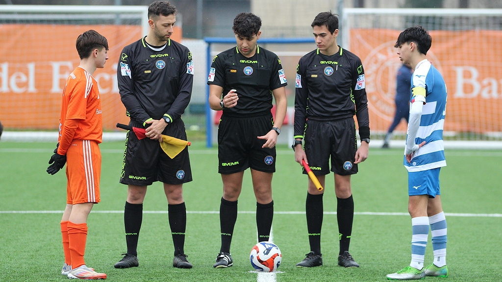 ALCIONE-PRO PATRIA UNDER 15 SERIE C • I due capitani agli ordini del direttore di gara Lorenzo Ginolfi della sezione di Lodi