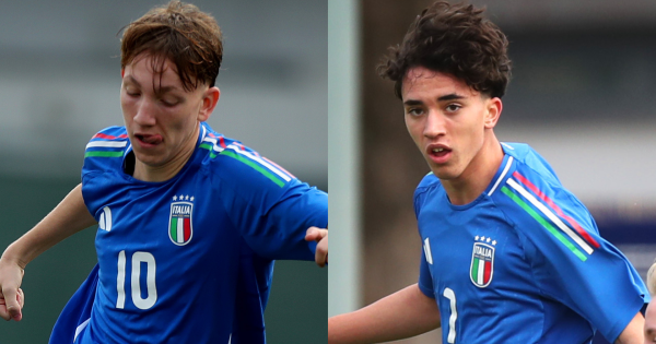 ITALIA UNDER 15 • Scaglione e Bernamonte, fantasista del Genoa e centrocampista della Fiorentina (foto figc.it)