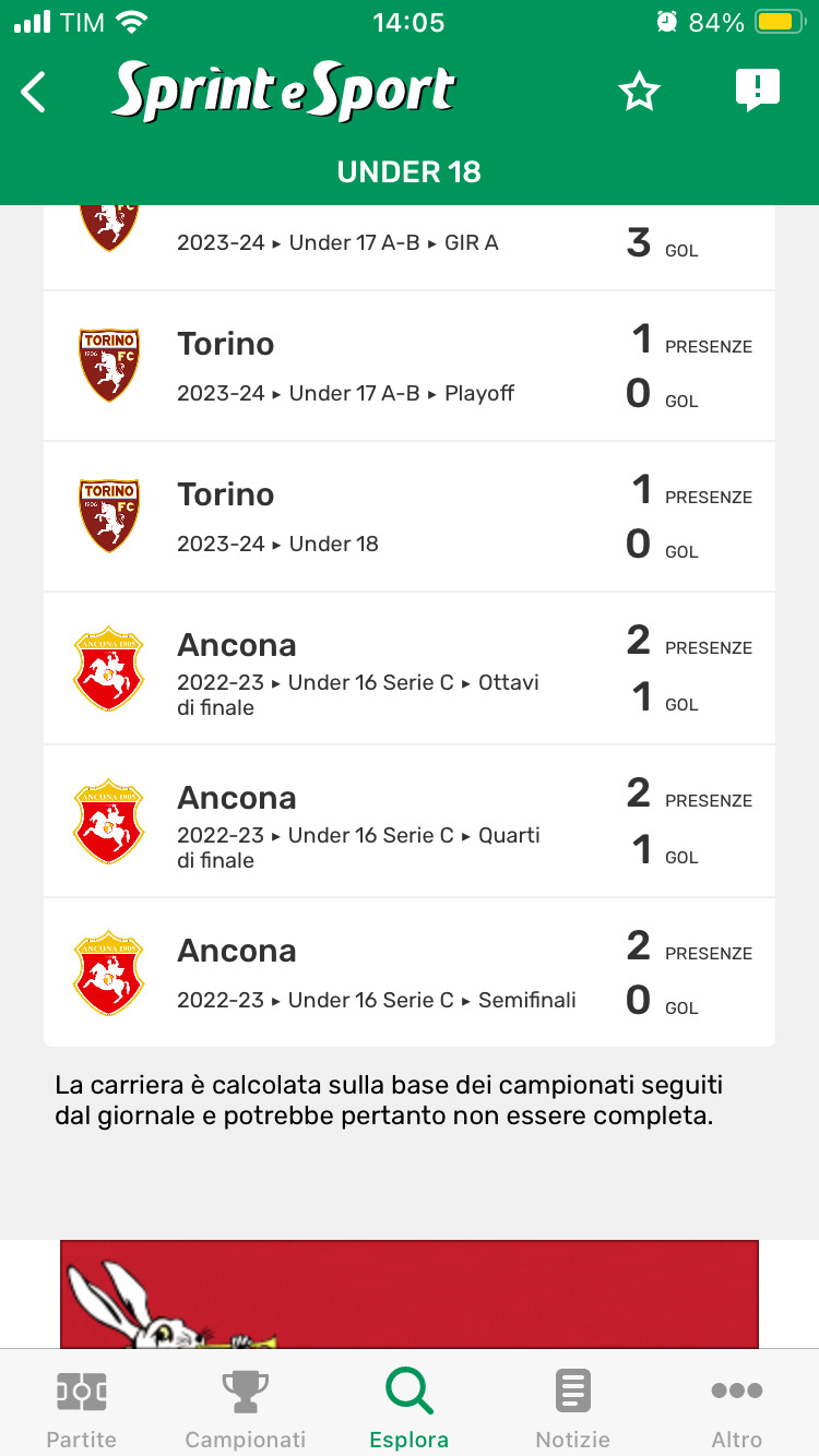 I NUMERI DELLA CARRIERA DI ALESSIO CACCIAMANI DALL'APP DI SPRINT E SPORT