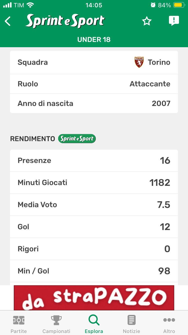I NUMERI DELLA STAGIONE DI ALESSIO CACCIAMANI DALL'APP DI SPRINT E SPORT