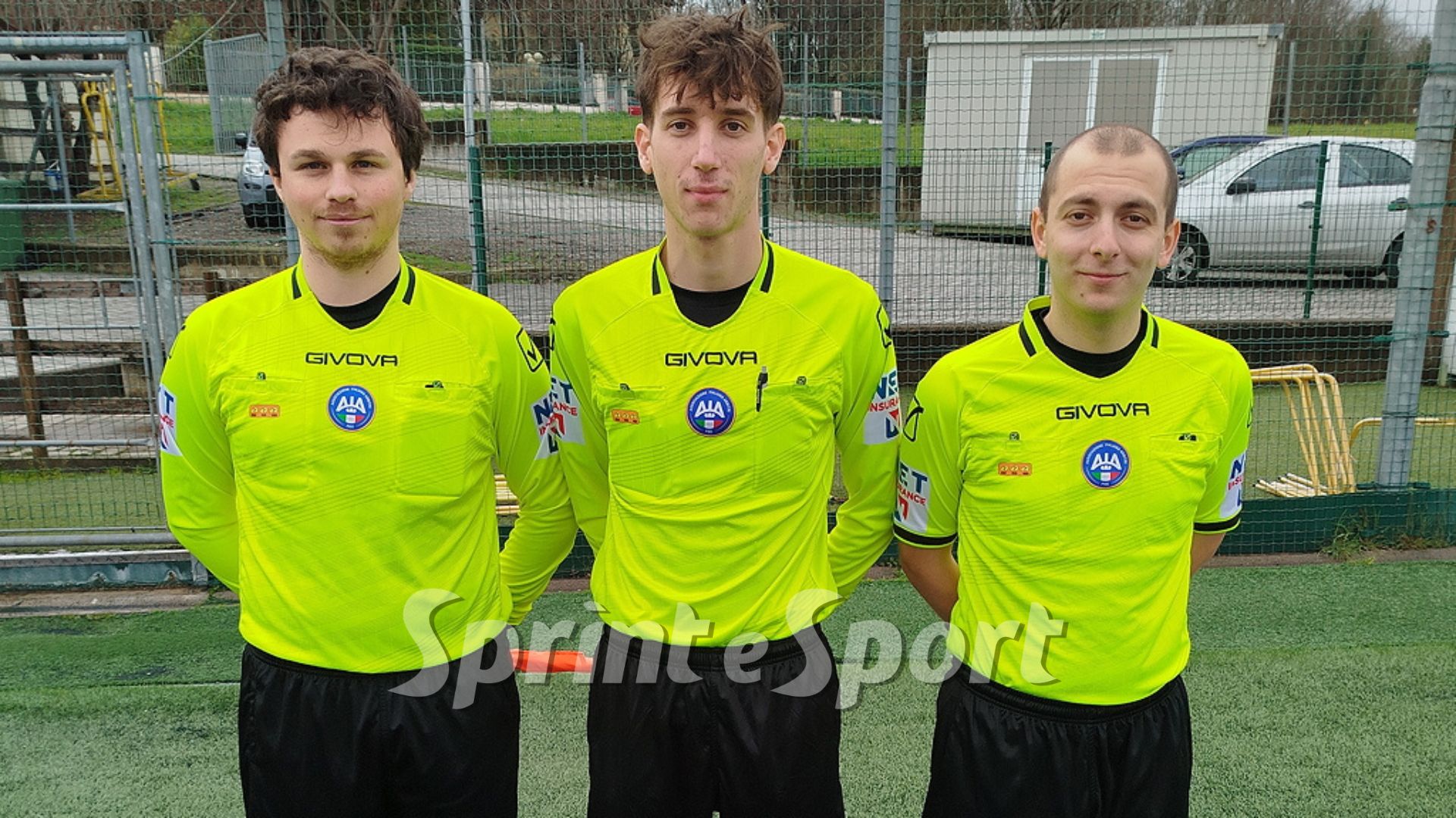 RENATE-ALBINOLEFFE UNDER16 SERIE C • La terna della partita: al centro Riccardo Messina della Sezione di Legnano, ai suoi lati Matteo Chiaro e Tudor Stinga di Busto Arsizio