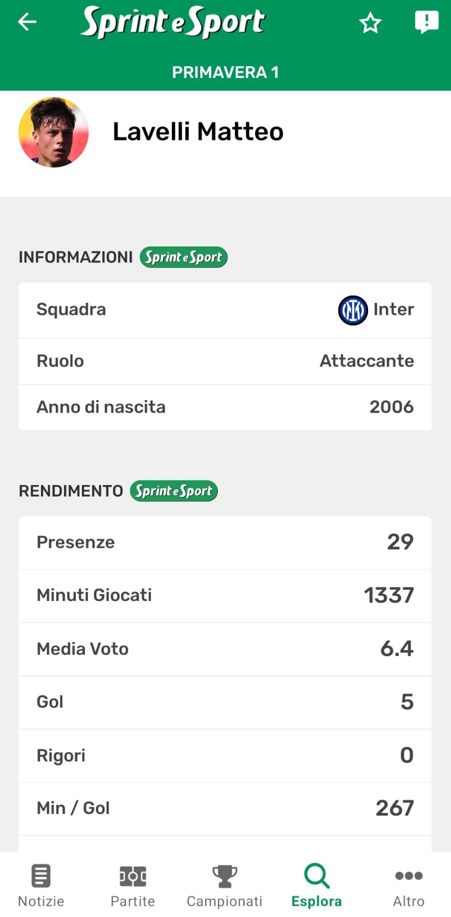 Matteo Lavelli, attaccante classe 2006, è stato convocato da Simone Inzaghi per il derby d'andata di Coppa Italia