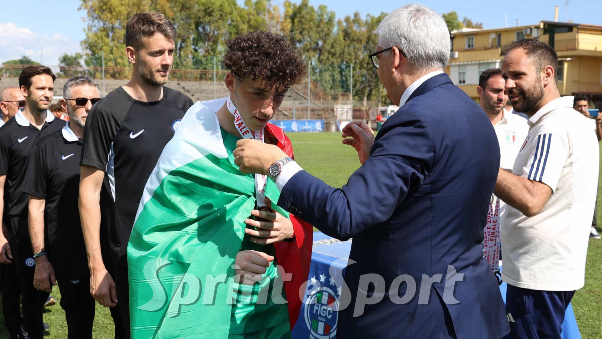 Umberto che viene premiato dopo essersi laureato Campione d'Italia con l'Inter Under 14