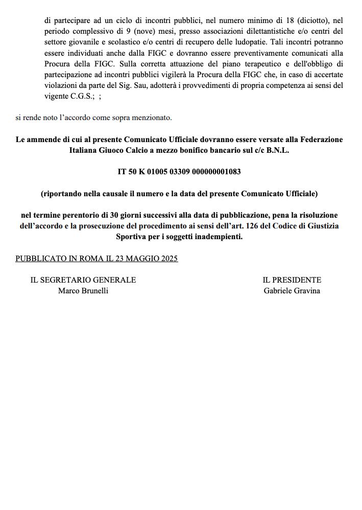 MAGAZZINIERE ED EX CALCIATORI MULTATI E SQUALIFICATI PER SCOMMESSE: IL COMUNICATO