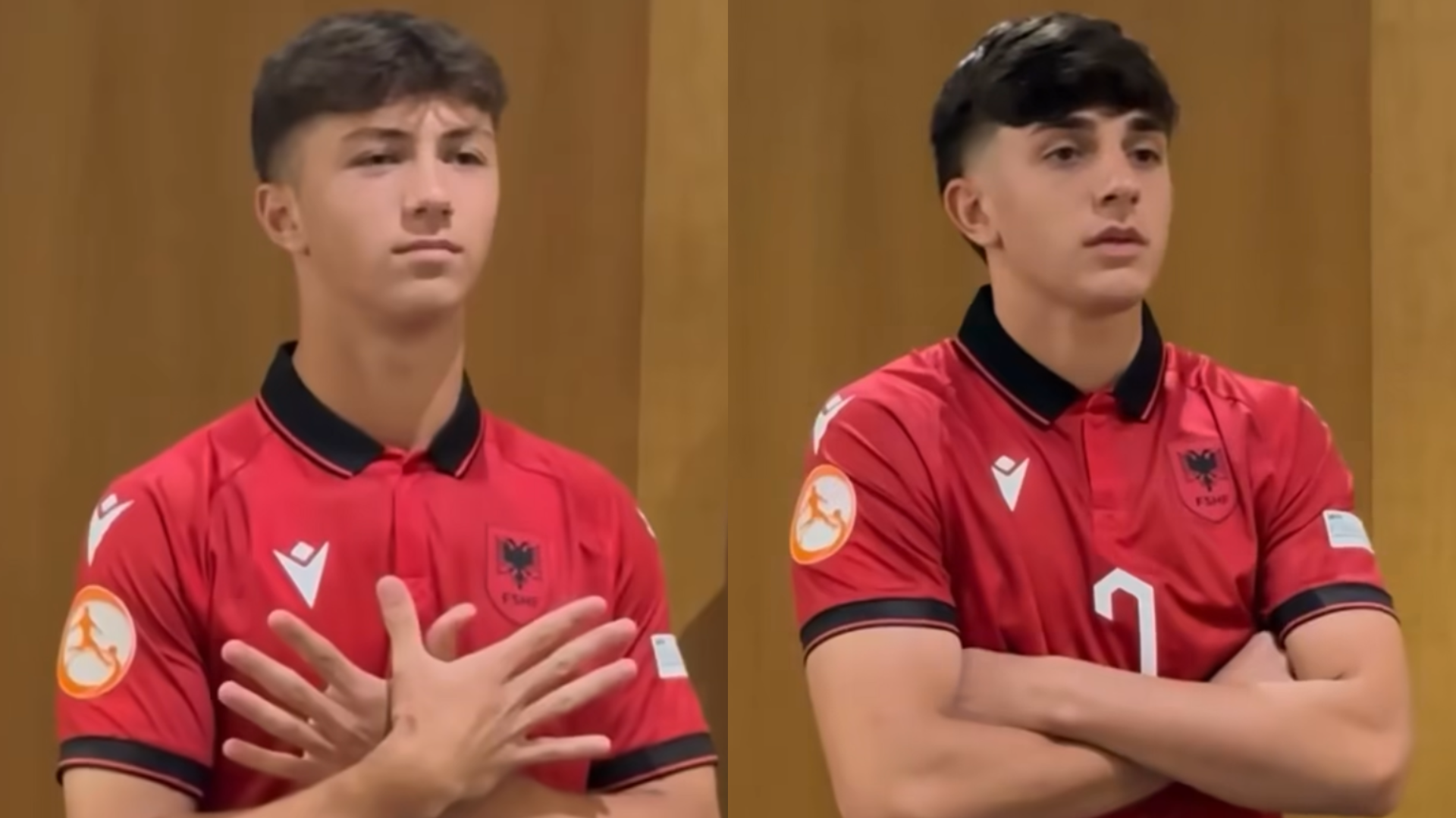 Cekrezi e Sheji con indosso la maglia dell'Albania, con cui hanno giocato l'Europeo Under 17 (foto instagram @fshforg)