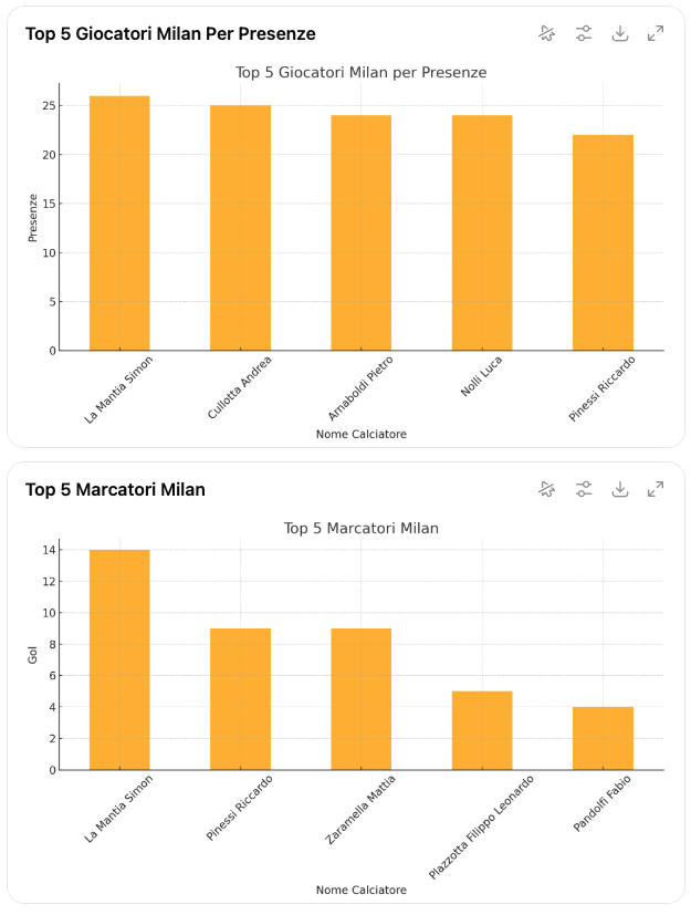 Il Milan è risultato essere la squadra con più presenze totali (418 vs 388) e minuti giocati complessivi (25.724 contro 23.577), indicando una rosa ampiamente sfruttata e una maggiore continuità nell'impiego dei giocatori. Un segno di profondità e stabilità.