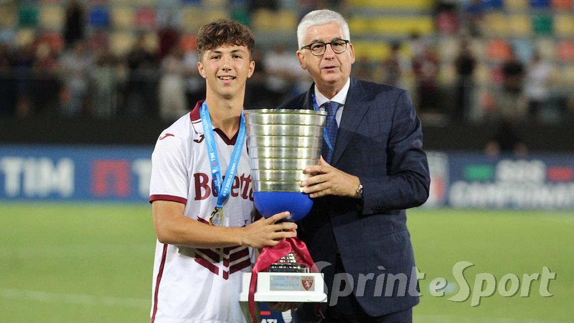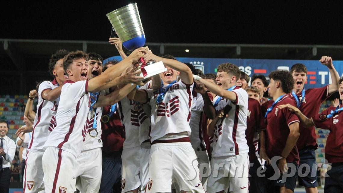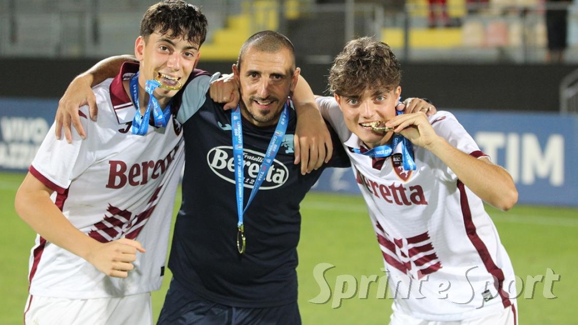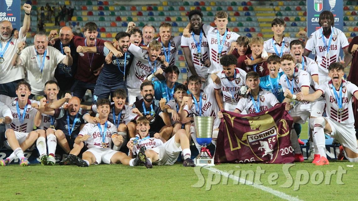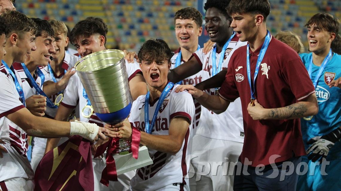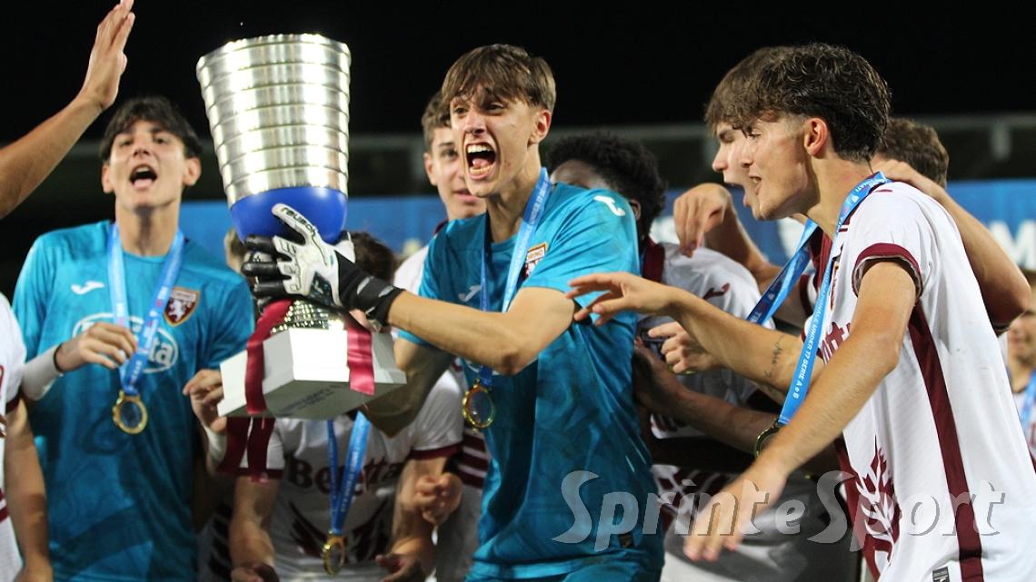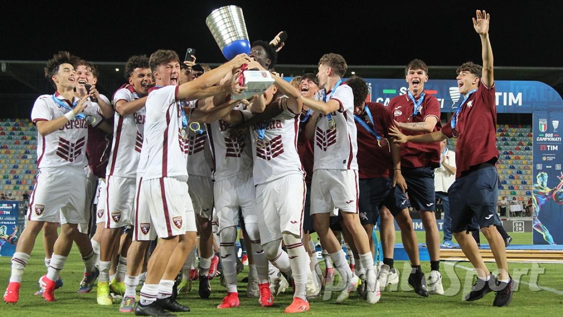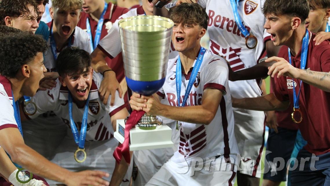 Partite: 28 (16 vinte, 10 pareggiate, 2 perse). Gol: 62 fatti, 33 subiti. Squadre eliminate prima della finalissima: Inter e Udinese. Risultato della finale: 0-0 e vittoria ai rigori. Epilogo: Scudetto. Pillole di un Torino storico, che nella serata di Frosinone batte il Milan al termine di una partita infinita e conquista il suo 29esimo Scudetto a livello giovanile. Un trionfo, quello arrivato ai calci di rigore e firmato dalla stellina Andrea Luongo, che permette al vivaio diretto ora da Ruggero Ludergnani di sorpassare la Roma, battuta settimana scorsa nella finale dell'Under 18, e di portarsi al secondo posto dietro all'Inter - che è a quota 39 - nella speciale classifica degli Scudetti giovanili. Scorri la gallery per vedere le foto più belle della serata del Benito Stirpe, a seguire invece tutti i contenuti pubblicati sulla partita.