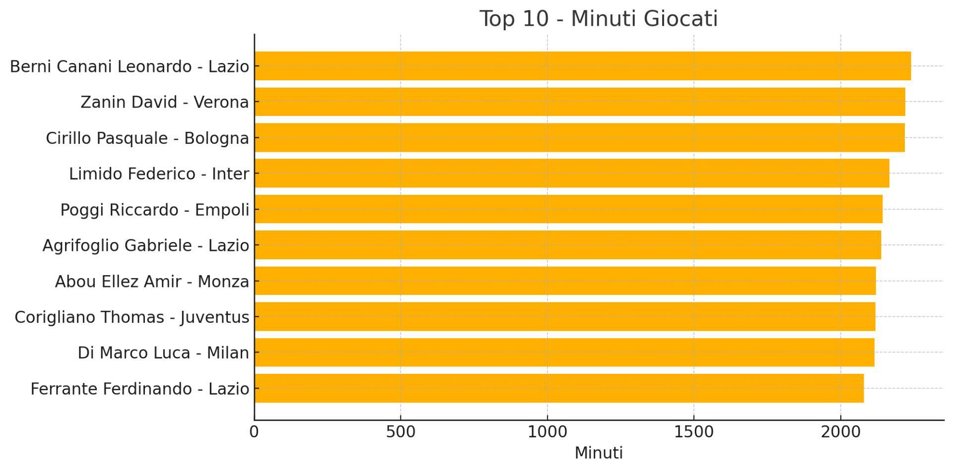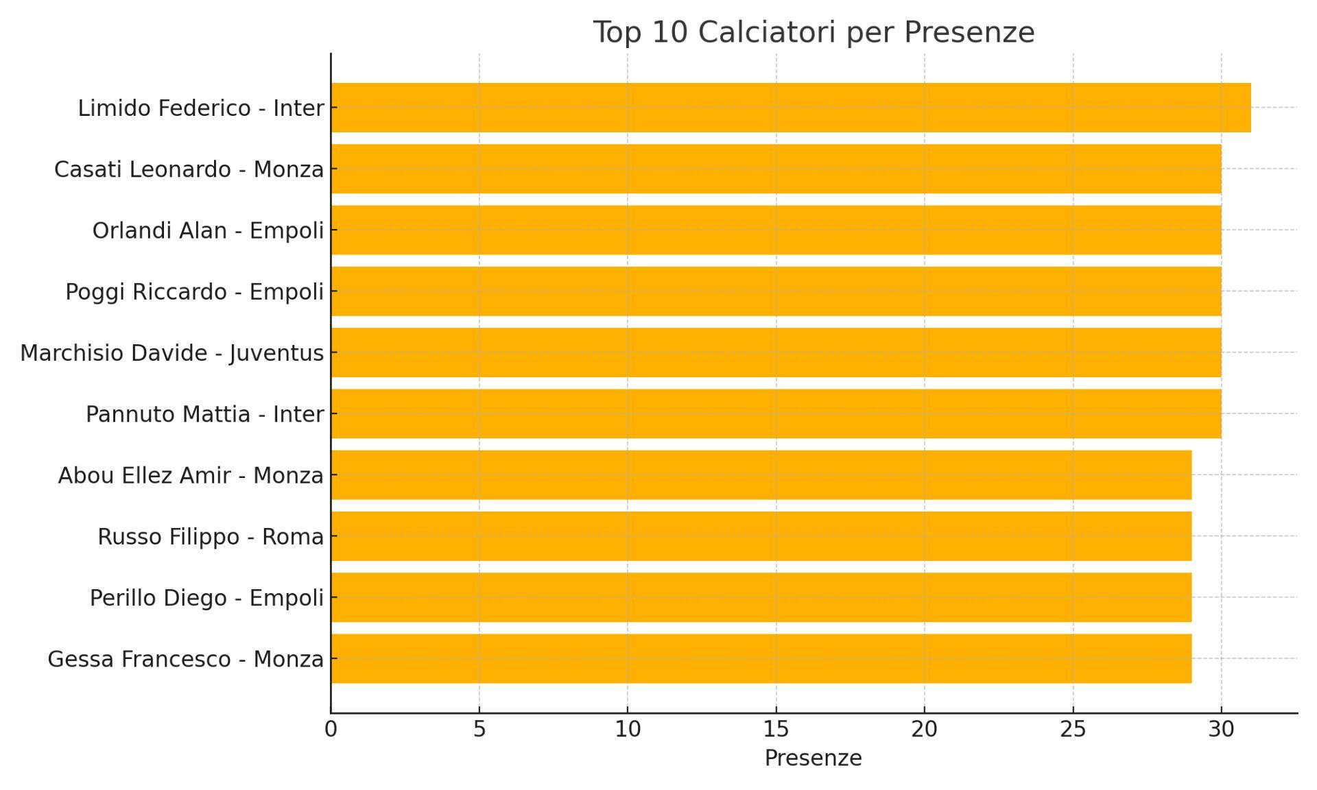 La classifica delle presenze racconta di continuità e titolarità costante. In vetta:
