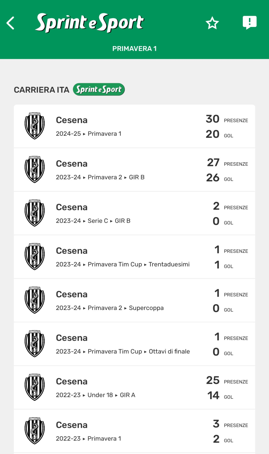 Il recente passato di Coveri con il Cesena. Per tutte le statistiche dei settori giovanili nazionali clicca sull'immagine e scarica gratuitamente l'app di Sprint e Sport!
