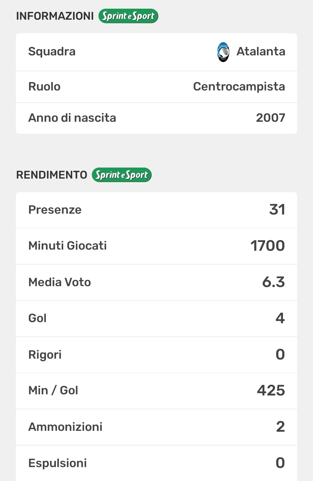 Il percorso con l’Atalanta ha avuto un’accelerazione già nel 2022, quando con l’Under 17 si è messo in vetrina in tornei di prestigio come la Coppa Calligaris. Da lì, una crescita costante. Nella stagione 2023/24 è stato uno dei punti di riferimento della formazione Under 17, chiudendo il campionato con 5 reti e 7 assist: numeri che raccontano di un centrocampista capace di accompagnare e rifinire, di alzare i giri del motore negli ultimi metri. E nella successiva annata, con l’Under 18 bergamasca, ecco l’ulteriore salto di qualità, cristallizzato anche dalle cifre ufficiali riportate dal Venezia: 31 presenze, 4 gol e 2 assist nella stagione 2024/25. Una continuità di rendimento che, a quell’età, vale come una medaglia al petto.