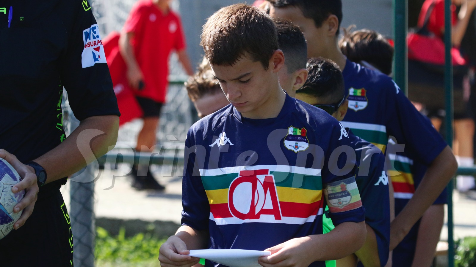 Alessandro Rua con la fascia di capitano, poco prima di entrare in campo con la maglia della Pro Eureka per una gara del SuperOscar Under 14, sul campo del Collegno Paradiso.