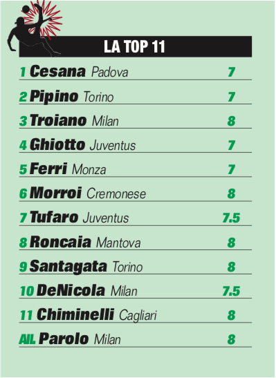 La backstory che c’è alla vigilia della gara tra Torino e Genoa parla di una settimana tormentata per i torelli di Riccardo Corallo, che hanno dovuto far fronte alle influenze e alla febbre arrangiandosi con il materiale a disposizione chiedendo sacrifici ai propri uomini. Nonostante la febbre, a non cedere è proprio l’uomo con la fascia di capitano intorno al braccio: Giuseppe Santagata, che nonostante la febbre gioca per ben 70 minuti trovando un minuto prima della sua uscita dal campo il gol del pareggio che risponde a quello di Bencivinni al terzo minuto. Nel finale il Toro va vicino più volte al 2-1 trovandolo poi sul ‘gong’ con un rigore guadagnato da Pipino e poi trasformato da Freguglia. La Juve nell’anticipo di sabato non trema a Pisa nonostante lo svantaggio subito per mano di Buemi e rimonta nel giro di 120 secondi con Pipitò e Tufaro.