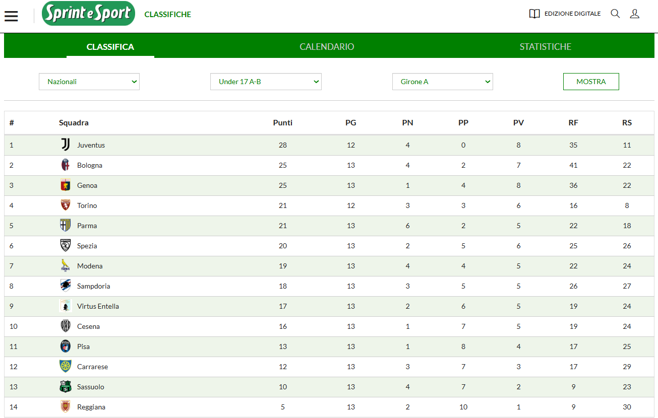 JUVENTUS (4-4-2): Giaretta, Rigo, Rocchetti, Osakue, Carfora, Aresini, Brancato, Marchisio, Corigliano, Paonessa, Santa Maria. All. Grauso.