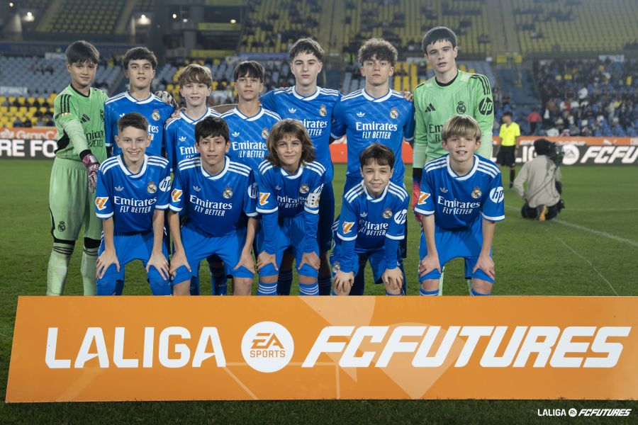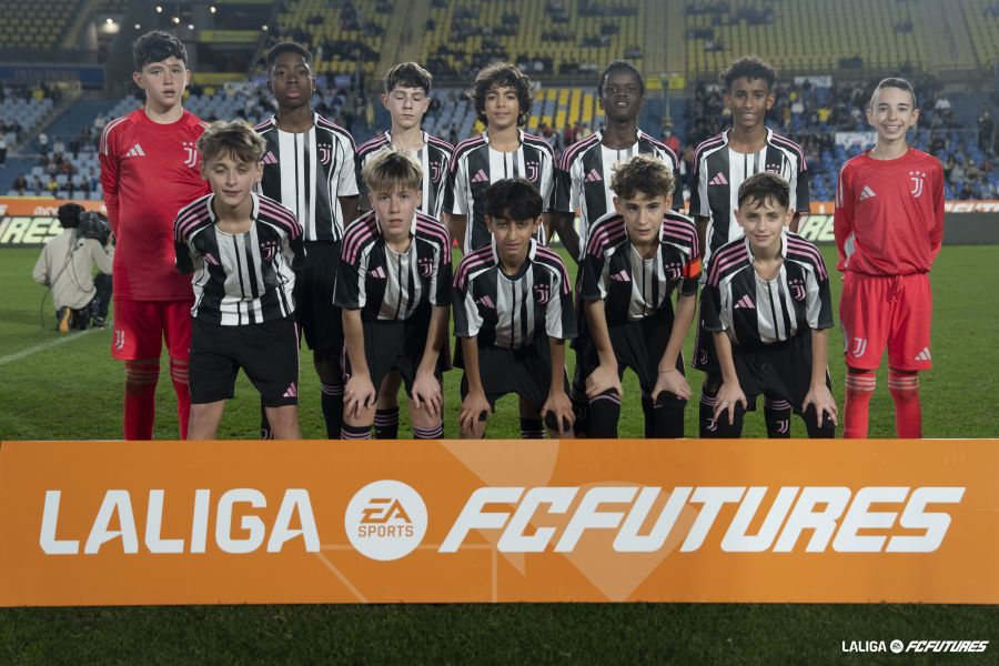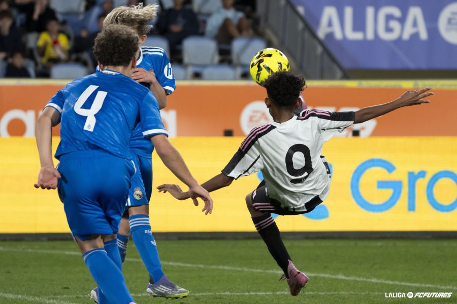 No, non è una finale di Champions League. E no, non è nemmeno una delle classiche amichevoli illustri. È uno scontro che richiama alla mente pagine storiche del calcio, ma che vale tantissimo anche in termini di punti. Real Madrid e Juventus si affrontano nel secondo turno de La Liga Futures: entrambe reduci da un pareggio all’esordio, entrambe con la necessità di tornare in hotel con il bottino pieno per dormire sonni tranquilli. Saporito sceglie i suoi sette fidati per la prima metà di gioco: Viassone tra i pali, la coppia Aghedo–Ortoncelli in difesa, il trio Baba Hay–Piumatti–Baldeh in mezzo al campo e il baby fenomeno Ba in avanti.