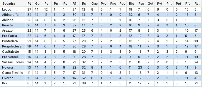 UNDER 17 SERIE C • GIRONE A • LA CLASSIFICA PRIMA DELLA PENALIZZAZIONE