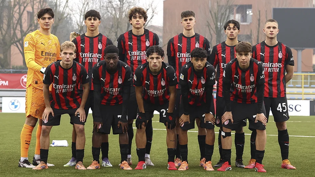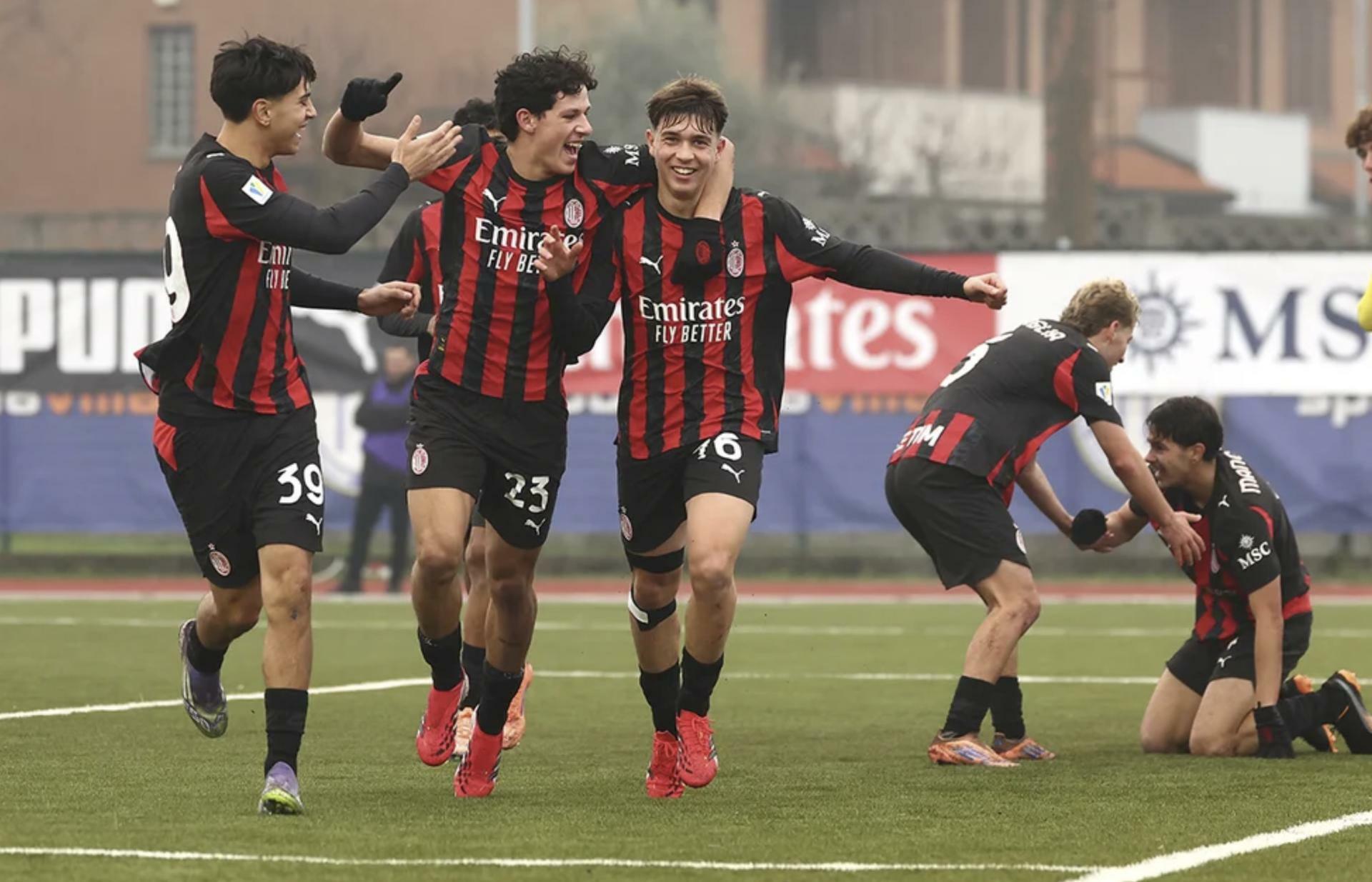Renna schiera i suoi con un 4-3-1-2 con Angelicchio, classe 2009 alla sua prima da titolare, dietro a Lontani e Scotti. In mediana Cisse vede ai suoi lati Mancioppi e Perera. Galloppa si affida al suo solito 4-2-3-1: Deli e Montenegro giocano da play davanti alla difesa, Atzeni agisce dietro ad un insolito Puzzoli falso nove. Parte bene il Milan che fa grande densità a centrocampo: anche Scotti aiuta in costruzione abbassandosi spesso per dare la sponda ai centrocampisti. Kone prova a sfondare sulla fascia ma viene bloccato all’ingresso in area. Nel Milan è curiosa la posizione di Angelicchio che da trequartista si allarga tanto sulla sinistra. Il primo vero squillo è di Scotti: l'attaccante del Milan riceve palla dopo un ottimo break a centrocampo ma viene sbilanciato e calcia a lato. Se da una parte Puzzoli prova a dialogare con Kone, è Lontani dall'altra ad avere una grande palla gol al 19', con Deli che perde un sanguinoso pallone nella propria trequarti. Mazzeo prova il sinistro poco dopo ma viene intercettato dai guantoni di Longoni. Il Milan trova grande coraggio con il colpo di testa di poco a lato di Vladimirov e concretizza alla mezz'ora: Tartaglia crossa dalla sinistra per Mancioppi con Deli che chiude in scivolata ma il pallone rimane davanti alla porta di Leonardelli che viene battuto proprio da Angelicchio. 1-0 e vantaggio rossonero. Kone si rende protagonista al 35': prima calcia con il sinistro su suggerimento di Montenegro, poi colpisce Tartaglia a palla lontana ma il direttore di gara non ravvisa il fallo. Il primo tempo si chiude con totale equilibrio: entrambi i terzini destri, Nolli e Trapani, si distinguono in proiezione offensiva.