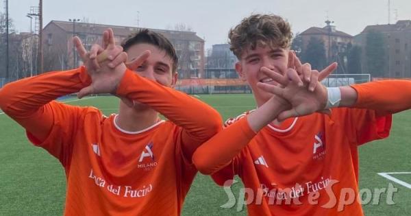 ALCIONE-LIVORNO UNDER 15 SERIE C • Balzarotti e Vallarelli che esultano dopo la vittoria coi toscani